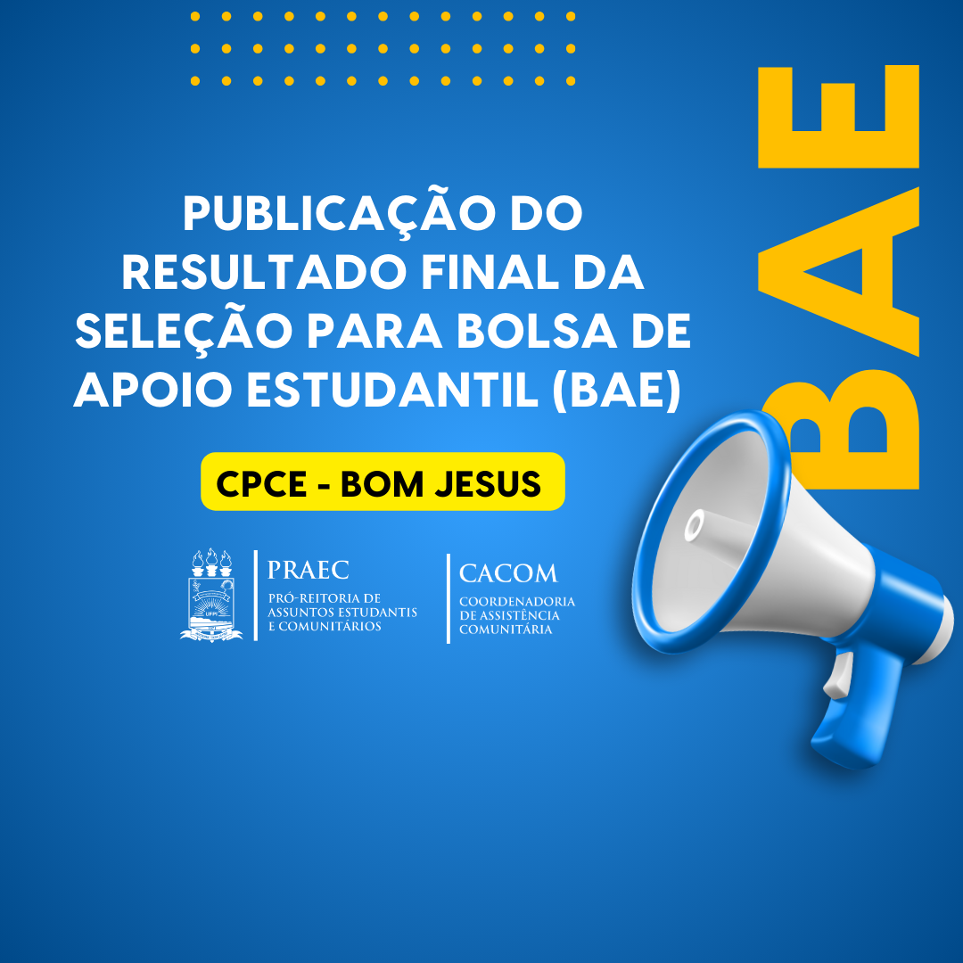 CACOM/PRAEC divulga Resultado Final da seleção para o benefício Bolsa de Apoio Estudantil (BAE) - CPCE/Bom Jesus (Edital Nº 09/2025 - PRAEC/UFPI)