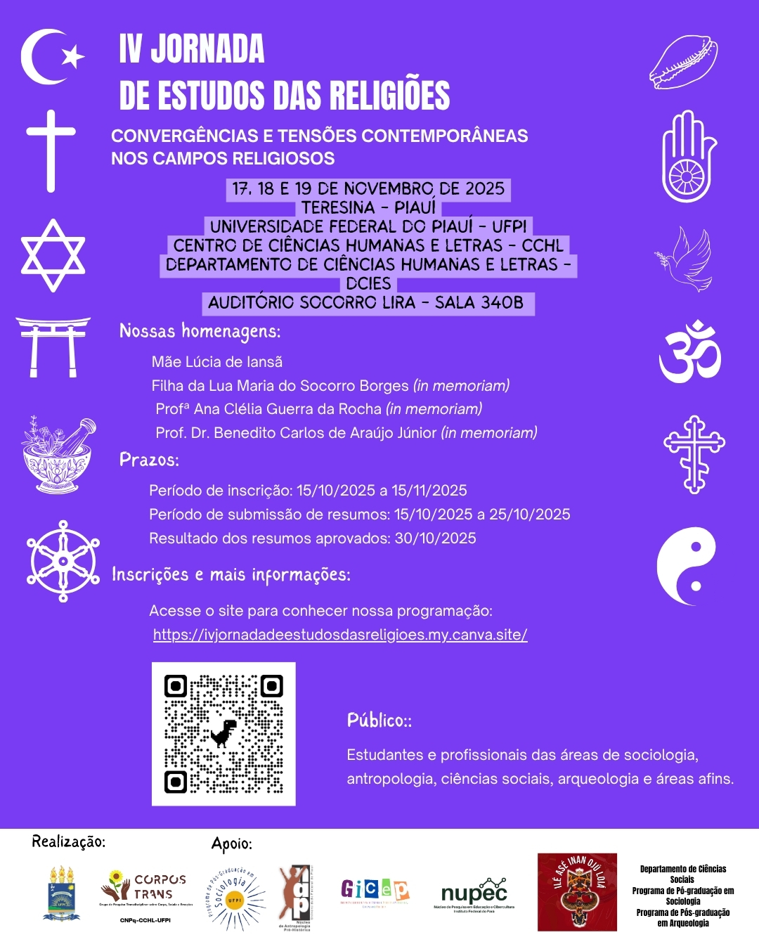 IV Jornada de Estudos das Religiões acontece de 17 a 19 de novembro na UFPI