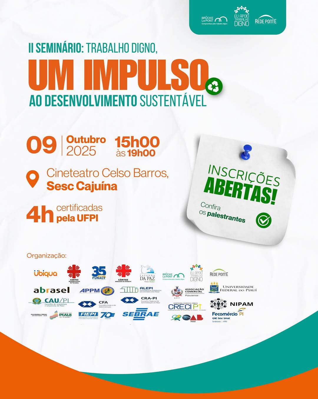 UFPI integra a organização do II Seminário Trabalho Digno: um impulso ao Desenvolvimento Sustentável; evento será nesta quinta-feira (9)