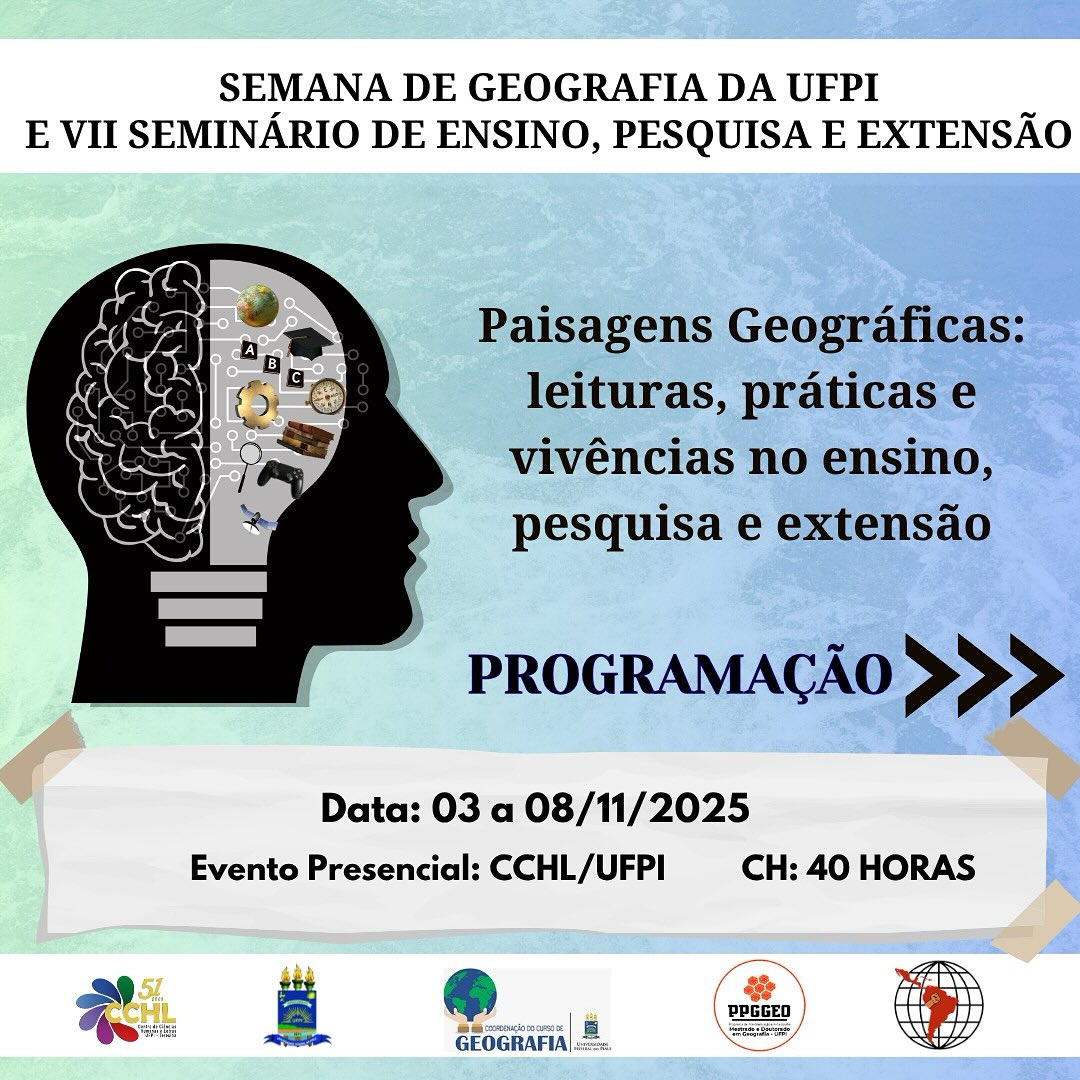 Semana de Geografia e VII Seminário de Ensino, Pesquisa e Extensão acontecem entre 3 e 8 de novembro