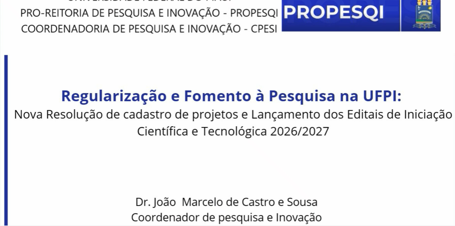 PROPESQI realiza live sobre nova resolução de projetos e editais de Iniciação Científica; confira na íntegra no YouTube da UFPI