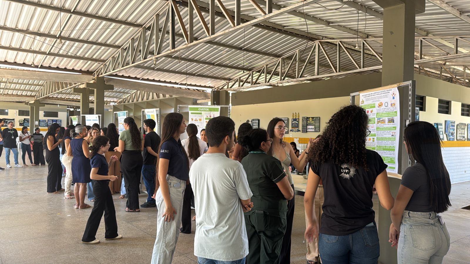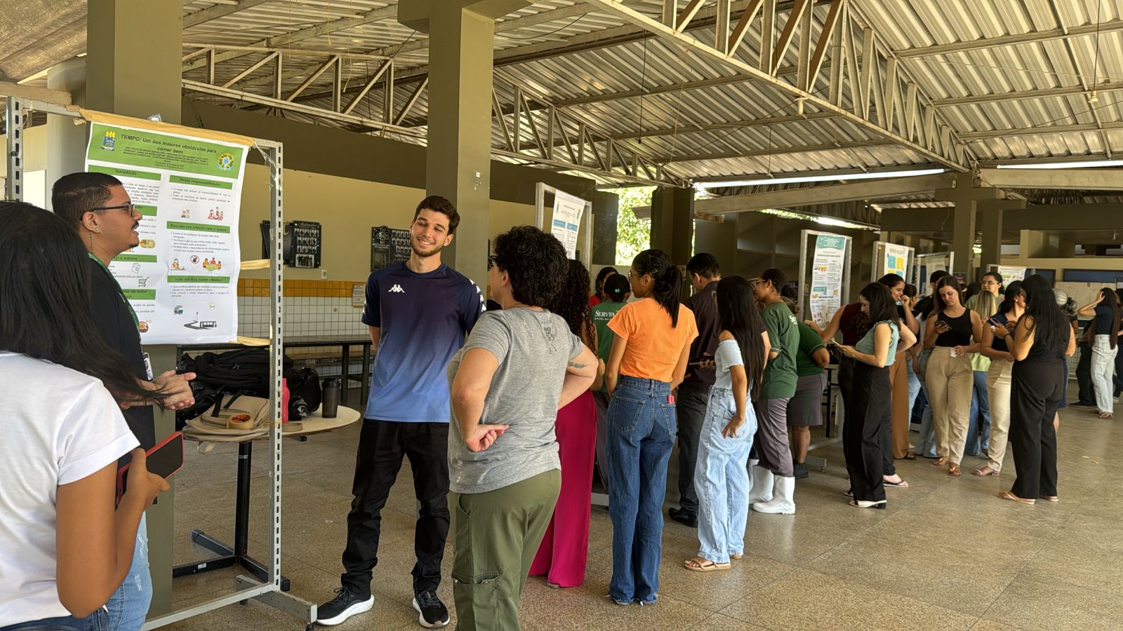 A abertura aconteceu no pátio central do Campus, onde alunos do curso de Nutrição realizaram a exposição “Como superar os obstáculos para uma alimentação saudável”. A atividade integrou a disciplina Nutrição e Ciclo de Vida III e foi orientada pela professora Dra. Danilla Michelle Costa e Silva. Durante a manhã, os estudantes compartilharam orientações práticas sobre escolhas alimentares conscientes, dificuldades comuns no cotidiano de trabalho e estratégias para incorporar hábitos mais saudáveis à rotina.