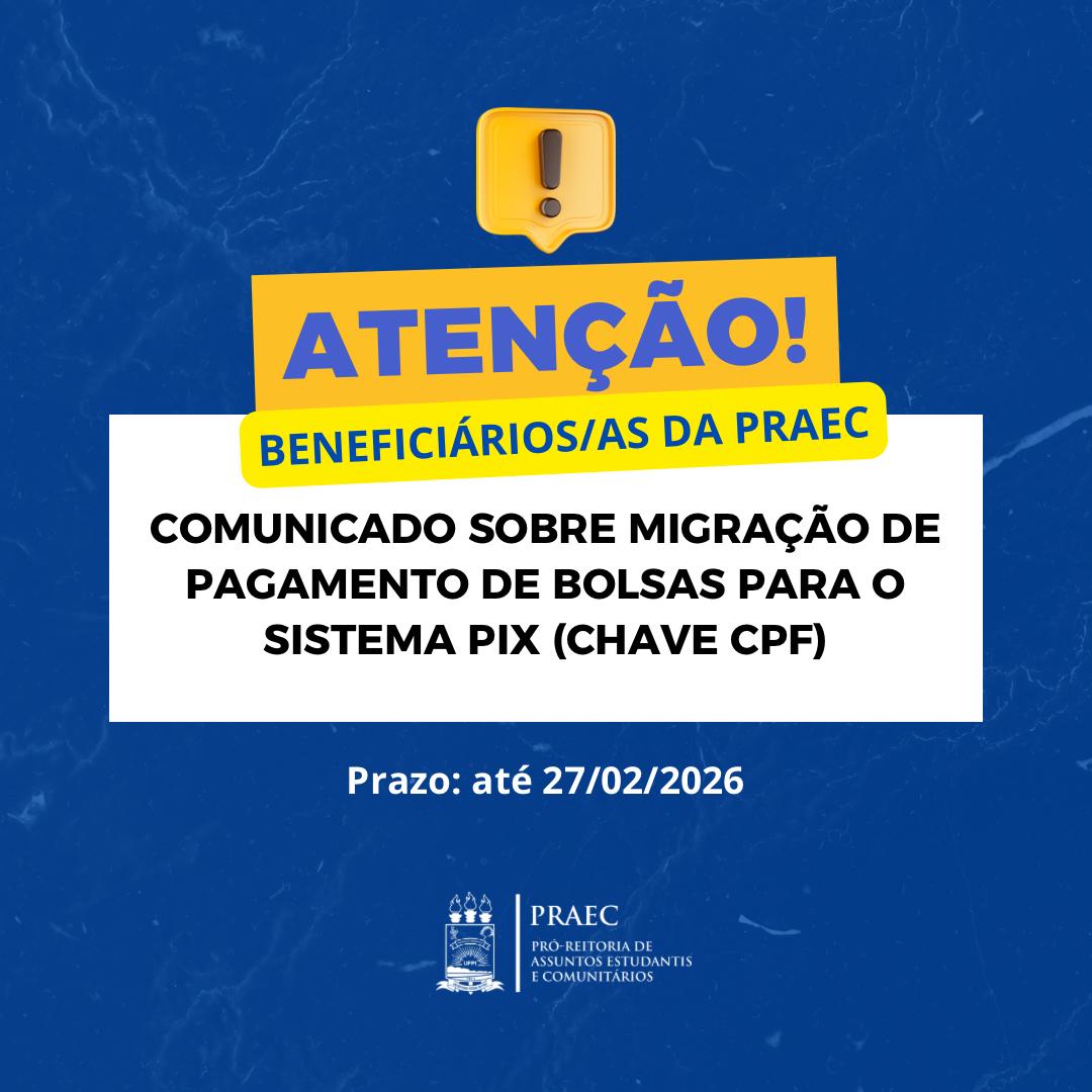 PRAEC reforça aos bolsistas sobre o prazo para migração ao novo formato de pagamentos para o sistema PIX (Chave CPF)