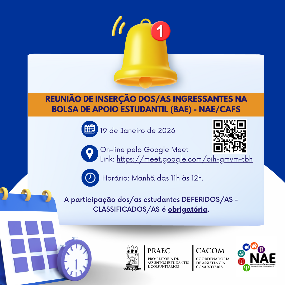 NAE/CAFS - Reunião de Inserção dos/as ingressantes no benefício Bolsa de Apoio Estudantil (BAE) de Floriano - Edital Nº 09/2025 PRAEC/UFPI