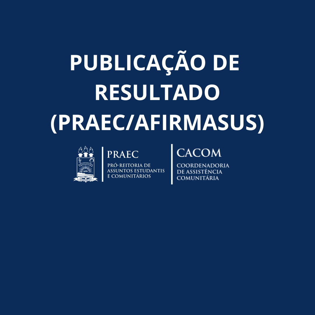 PRAEC/PREXC DIVULGA RESULTADO EDITAL INTERNO PARA A SELEÇÃO DE PROJETOS REFERENTES À SELEÇÃO PARA O PROGRAMA NACIONAL DE APOIO À PERMANÊNCIA, DIVERSIDADE E VISIBILIDADE PARA DISCENTES NA ÁREA DA SAÚDE – AFIRMASUS 2025 - Projetos Internos Selecionados
