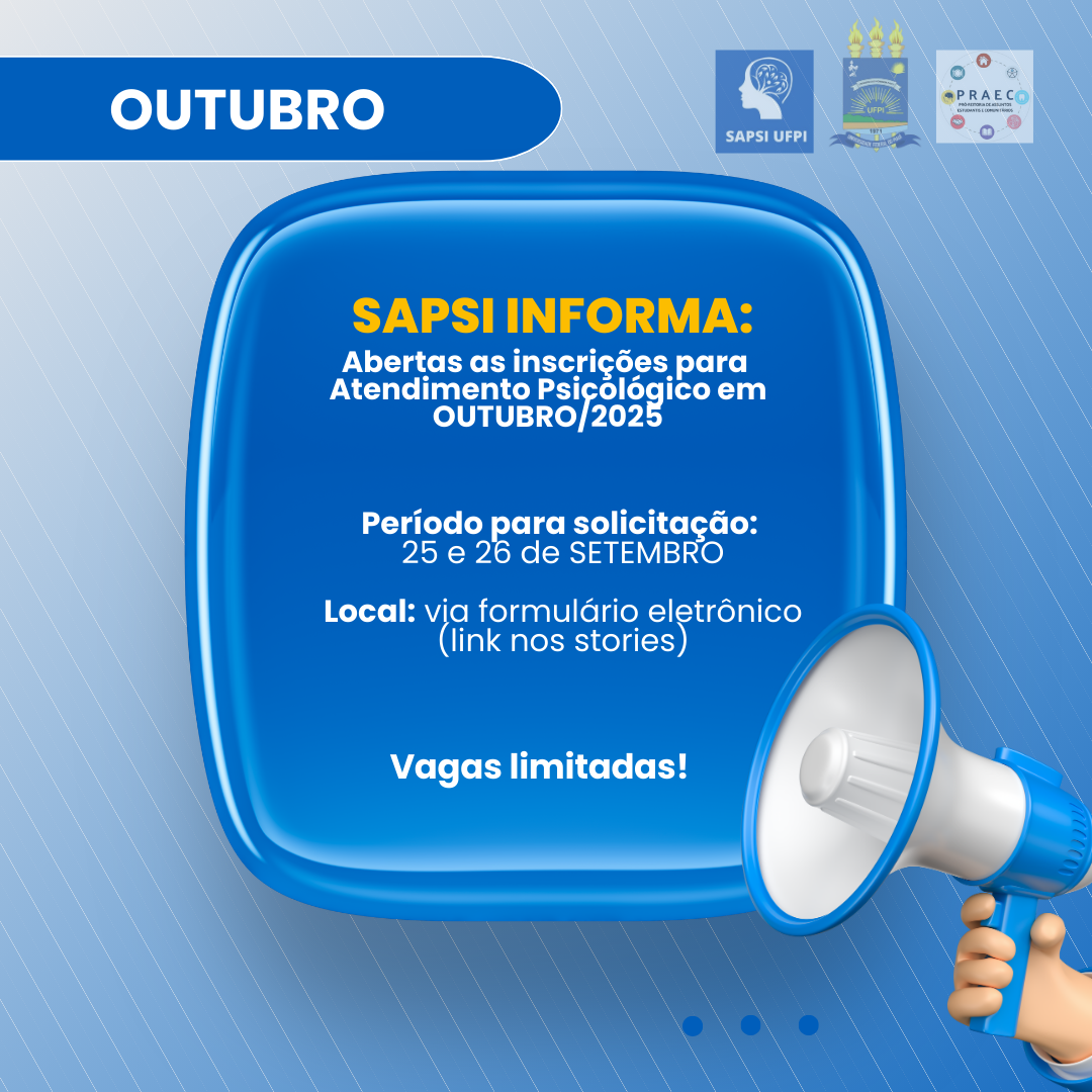 SAPSI INFORMA: NOVAS VAGAS PARA ATENDIMENTO PSICOLÓGICO/SETEMBRO