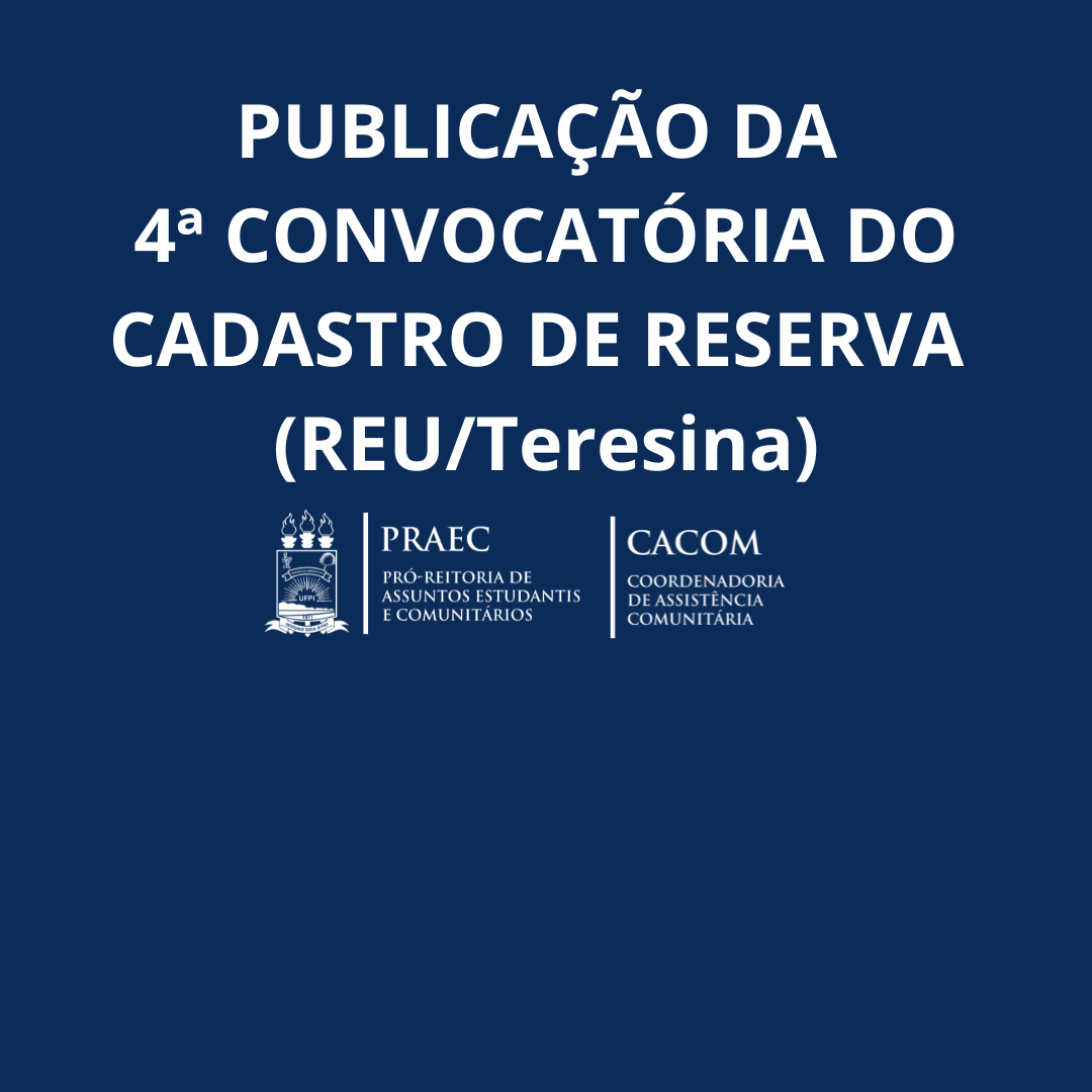 CACOM/PRAEC divulga quarta convocatória do cadastro de reserva (vaga masculina) do benefício Residência Universitária - CMPP/Teresina
