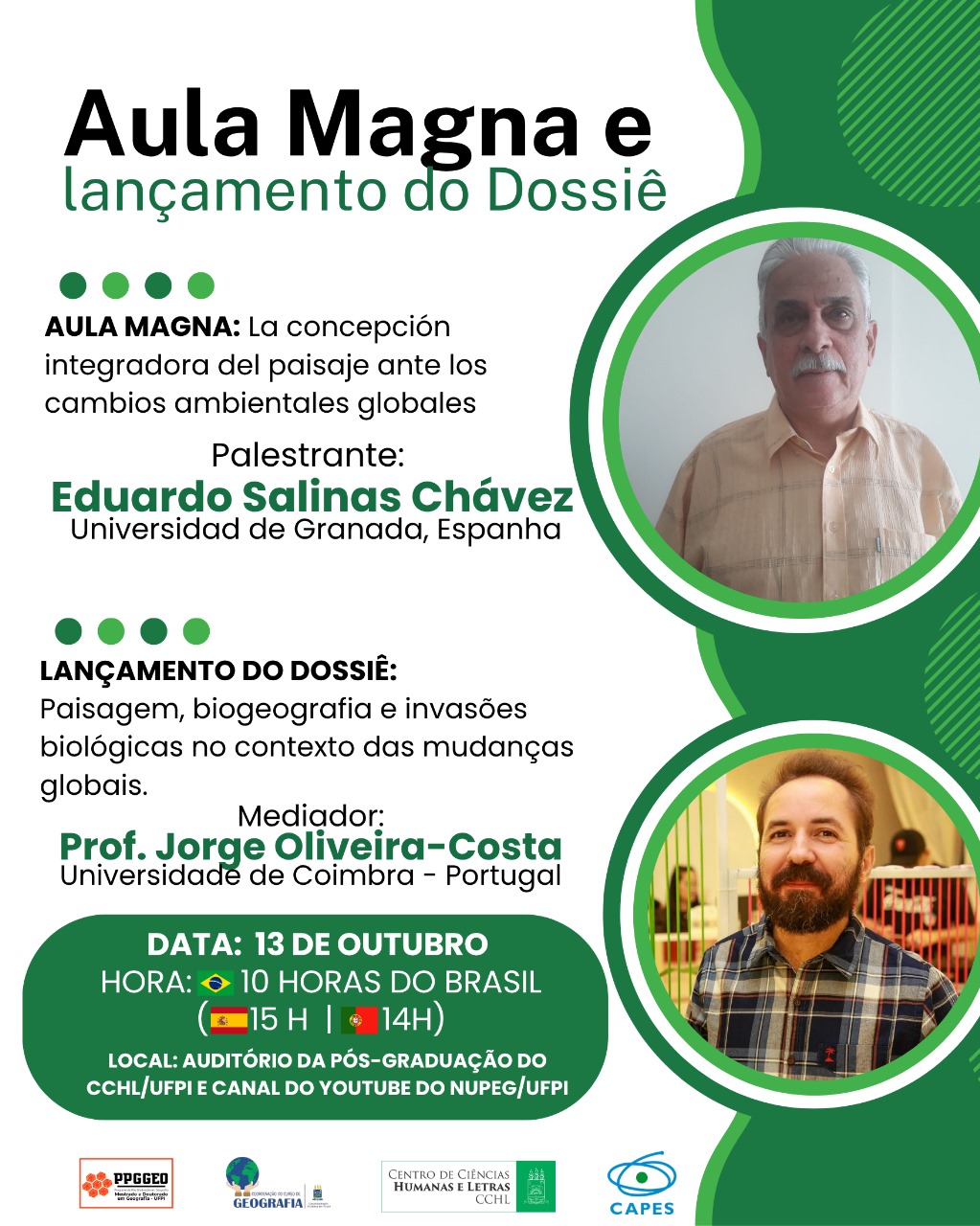 Lançamento do Dossiê “Paisagem, Biogeografia e Invasões Biológicas no Contexto das Mudanças Globais” será realizado em 13 de outubro