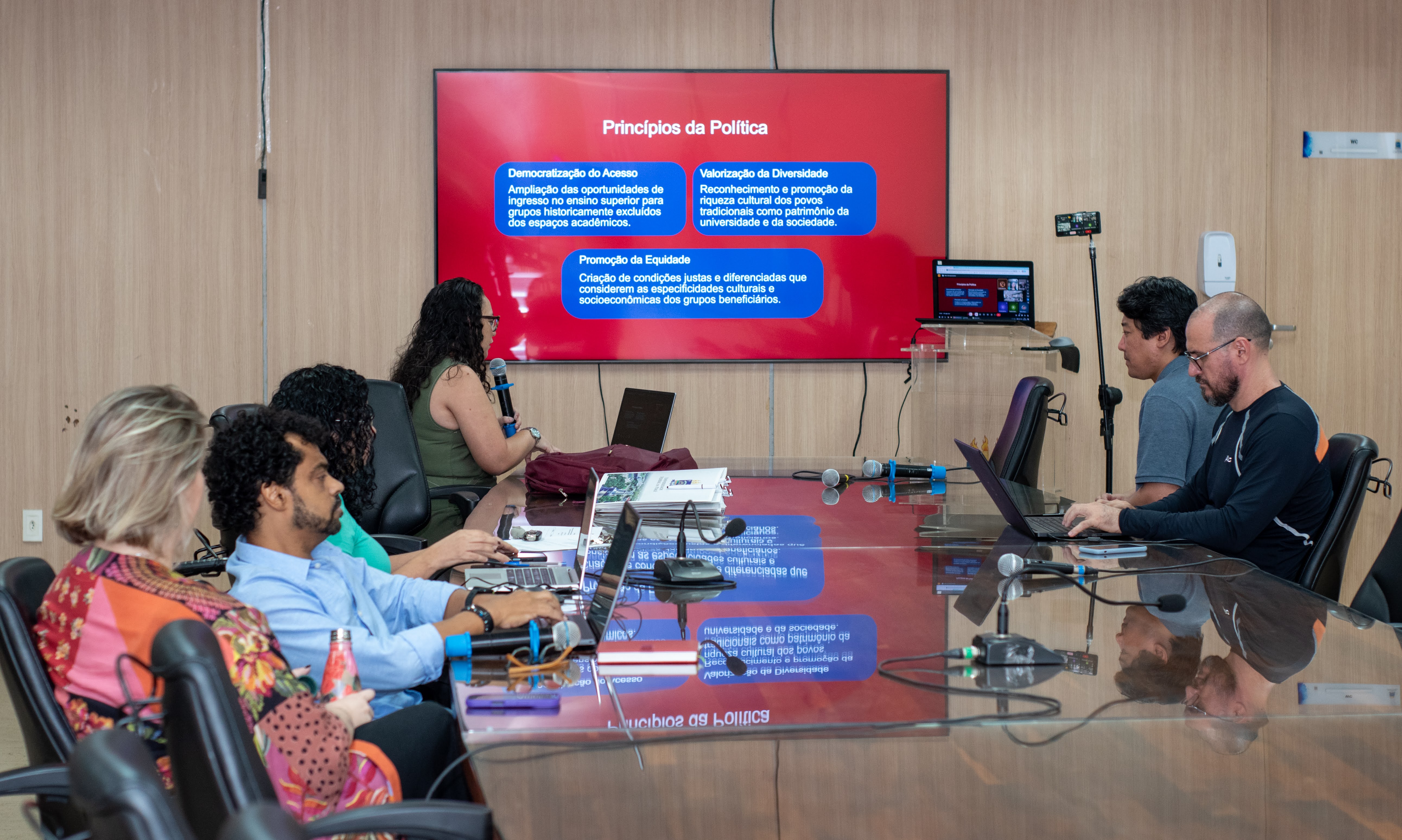 Na reunião, mais uma vez, a Universidade reafirmou seu compromisso com a inclusão e a democratização do acesso a grupos historicamente excluídos da educação superior. Em diálogo, a proposta de texto para efetivação da política, como requisitos para ingresso, origem das vagas que serão disponibilizadas, oportunidades de acesso à assistência estudantil e como se dará a gestão de todo o processo.