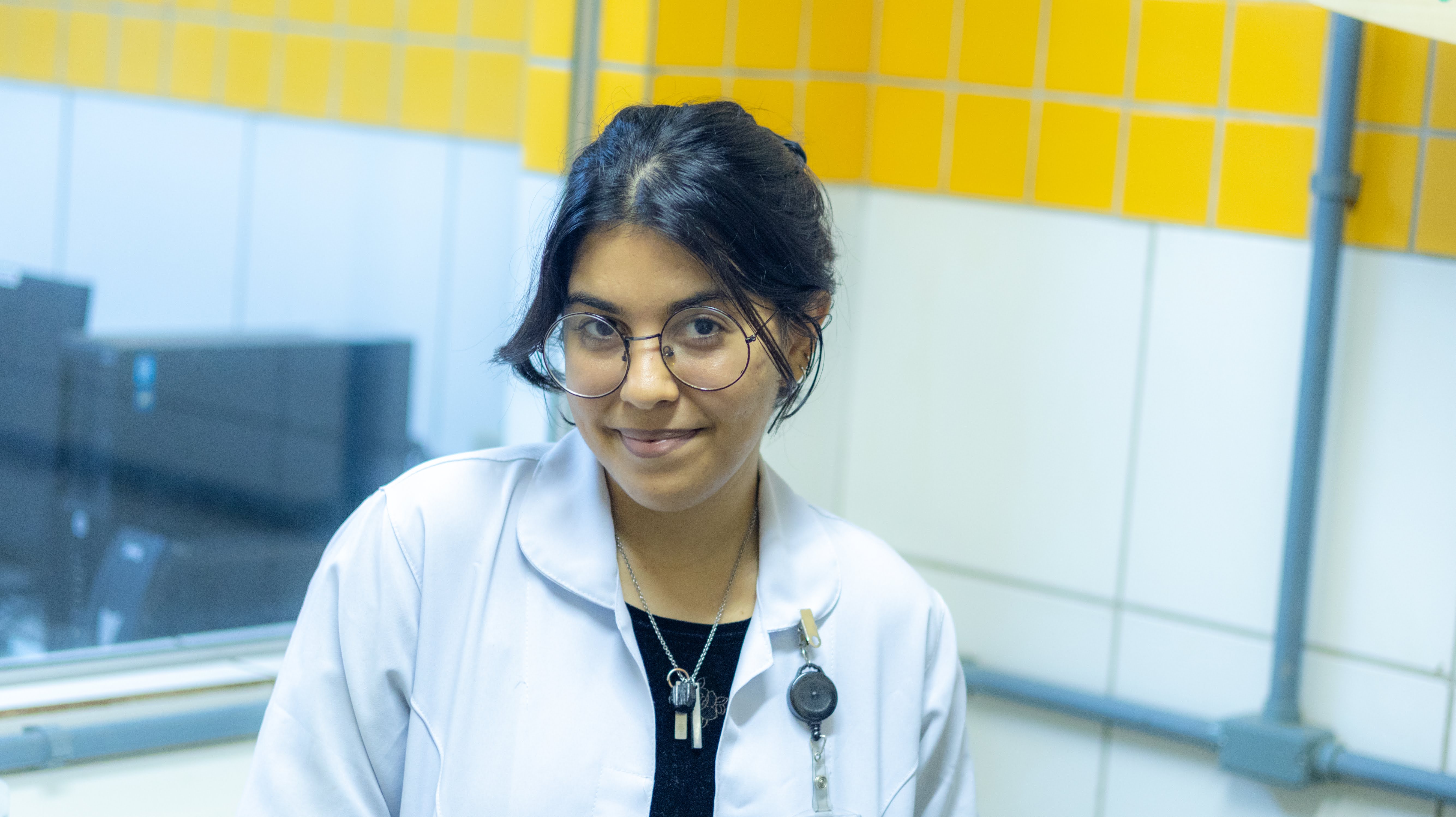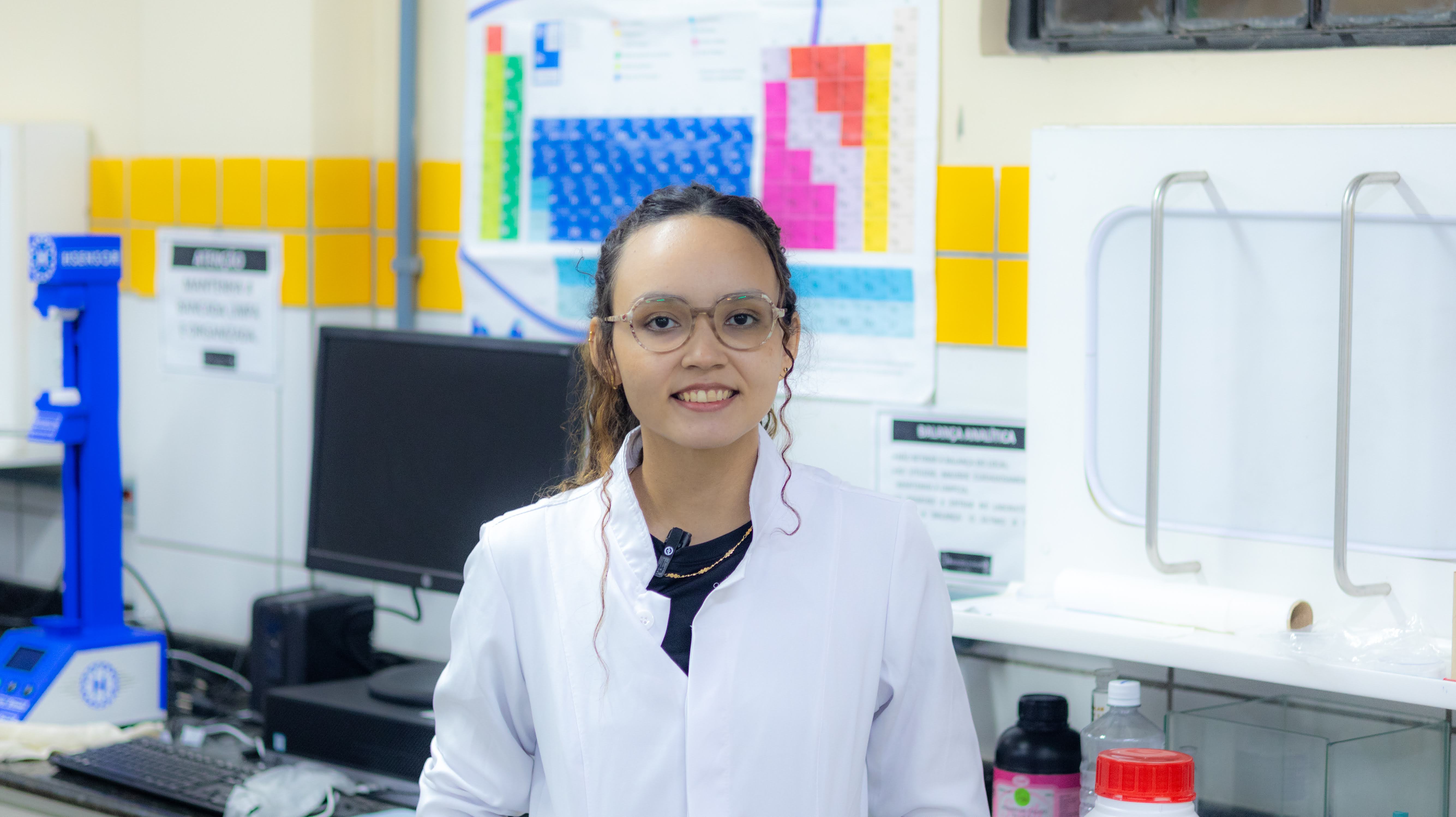 Na foto, estudante do PPG em Ciência dos Materiais desenvolve estudo e pesquisa em laboratório