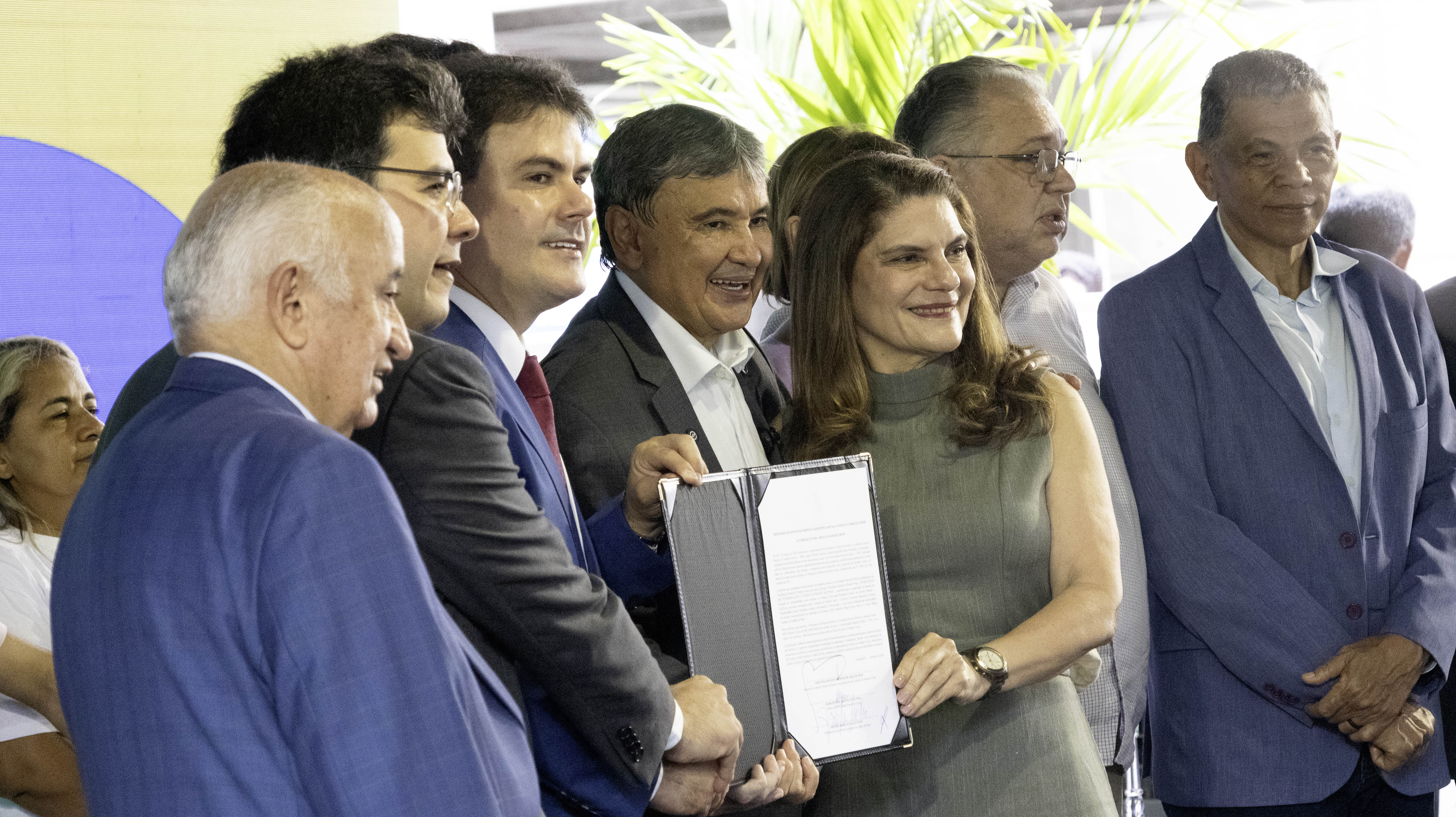 A Universidade Federal do Piauí (UFPI) participou, na manhã desta segunda-feira (2), da solenidade de adesão da Assembleia Legislativa do Piauí (Alepi) ao Programa Acredita no Primeiro Passo, do Ministério do Desenvolvimento e Assistência Social, Família e Combate à Fome (MDS). O evento aconteceu na Esplanada da Alepi, com a presença da reitora Nadir Nogueira, do ministro Wellington Dias, do governador Rafael Fonteles, do presidente da Alepi, Severo Eulálio, do presidente da FADEX, Antônio Vinícius, deputados federais, prefeitos e outras autoridades.