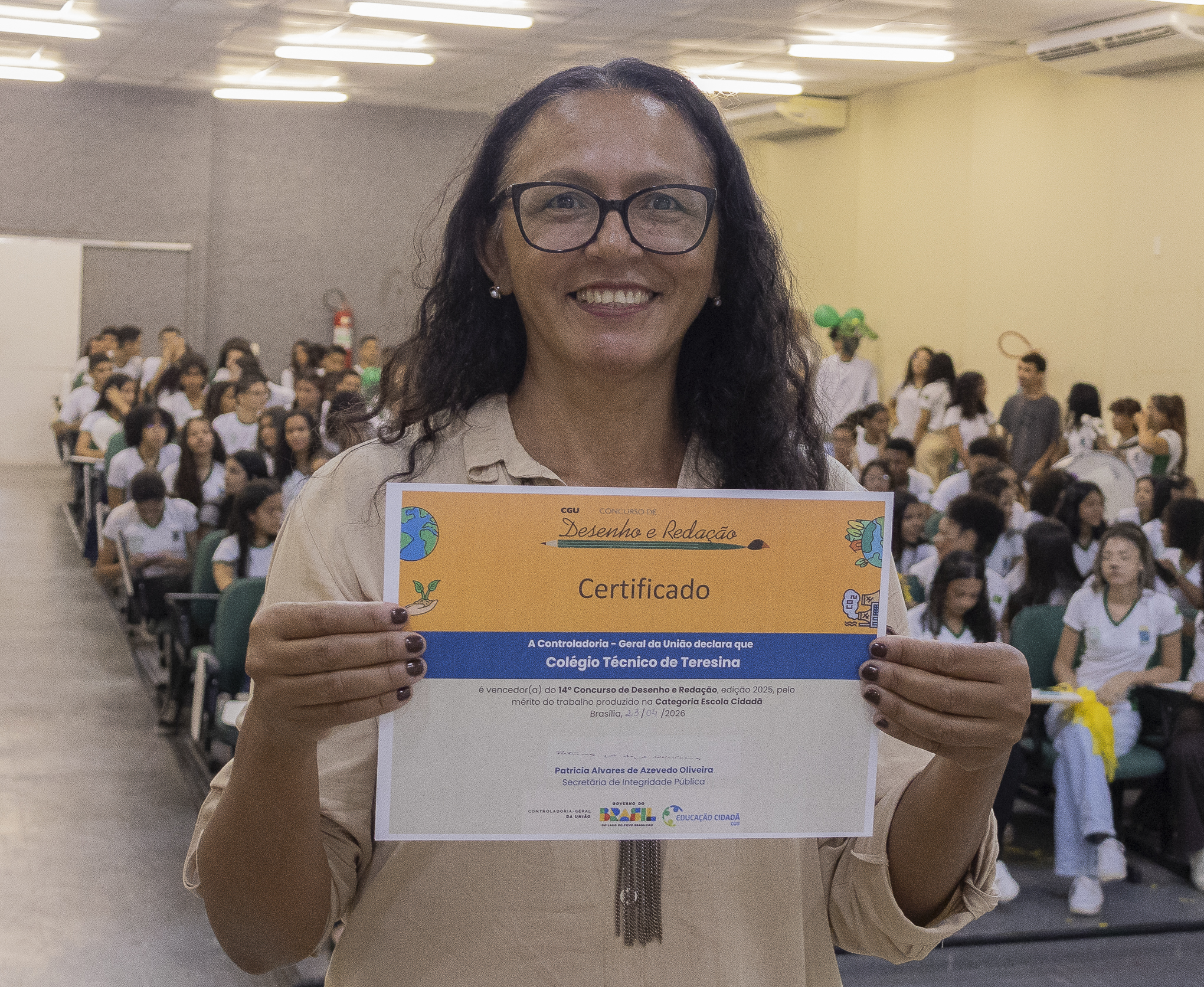 Pelo segundo ano consecutivo, o Colégio Técnico de Teresina (CTT), da Universidade Federal do Piauí (UFPI), conquistou o Prêmio Escola Cidadã, concedido pela Controladoria-Geral da União. A entrega ocorreu na manhã desta quinta-feira (23), como reconhecimento ao trabalho desenvolvido pela Instituição na 14ª edição do Concurso de Desenho e Redação do Programa Educação Cidadã, realizada em 2025.
