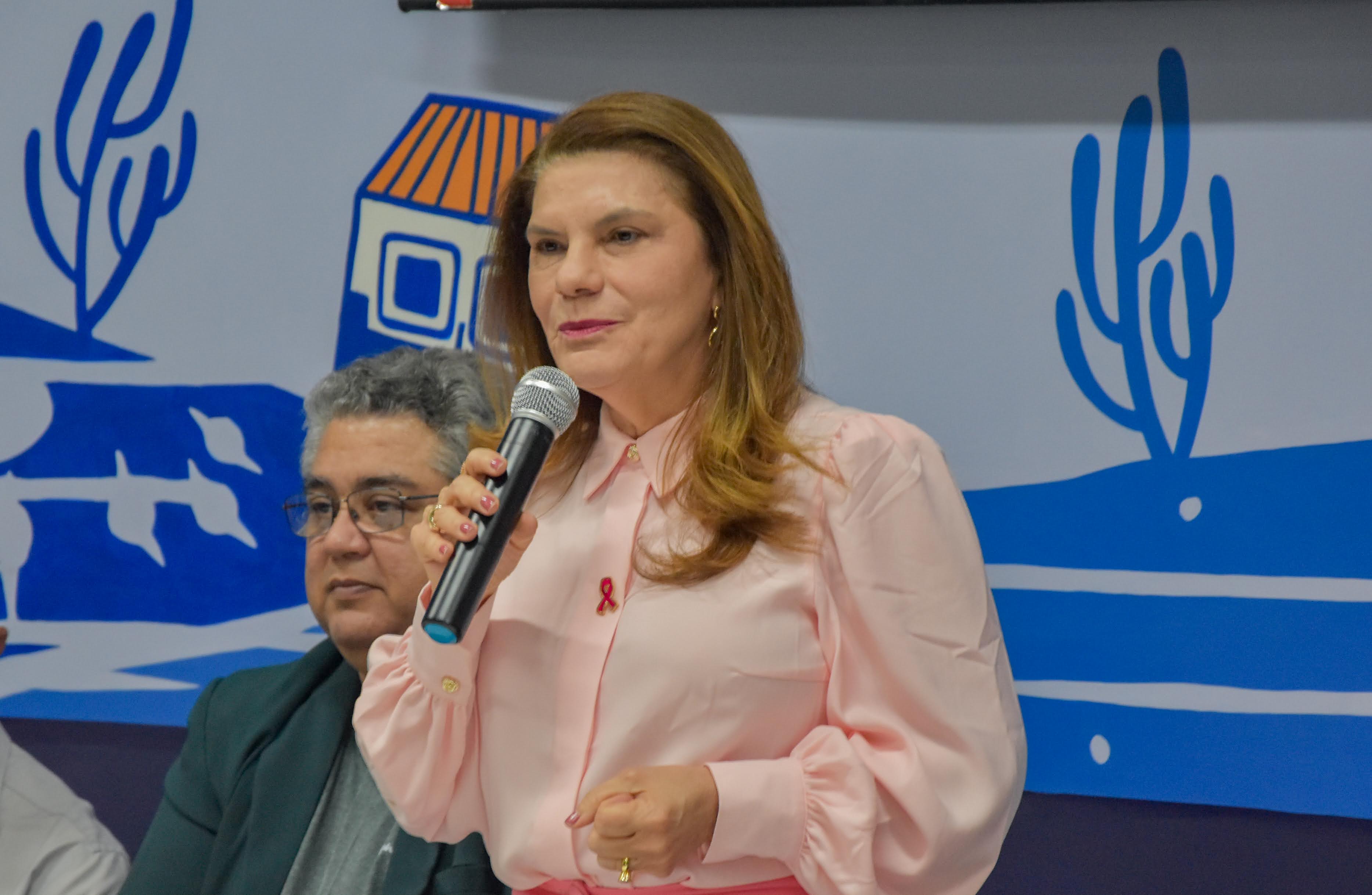 Reitora da UFPI, Nadir Nogueira, na mesa de honra da solenidade de premiação da OBF 2024