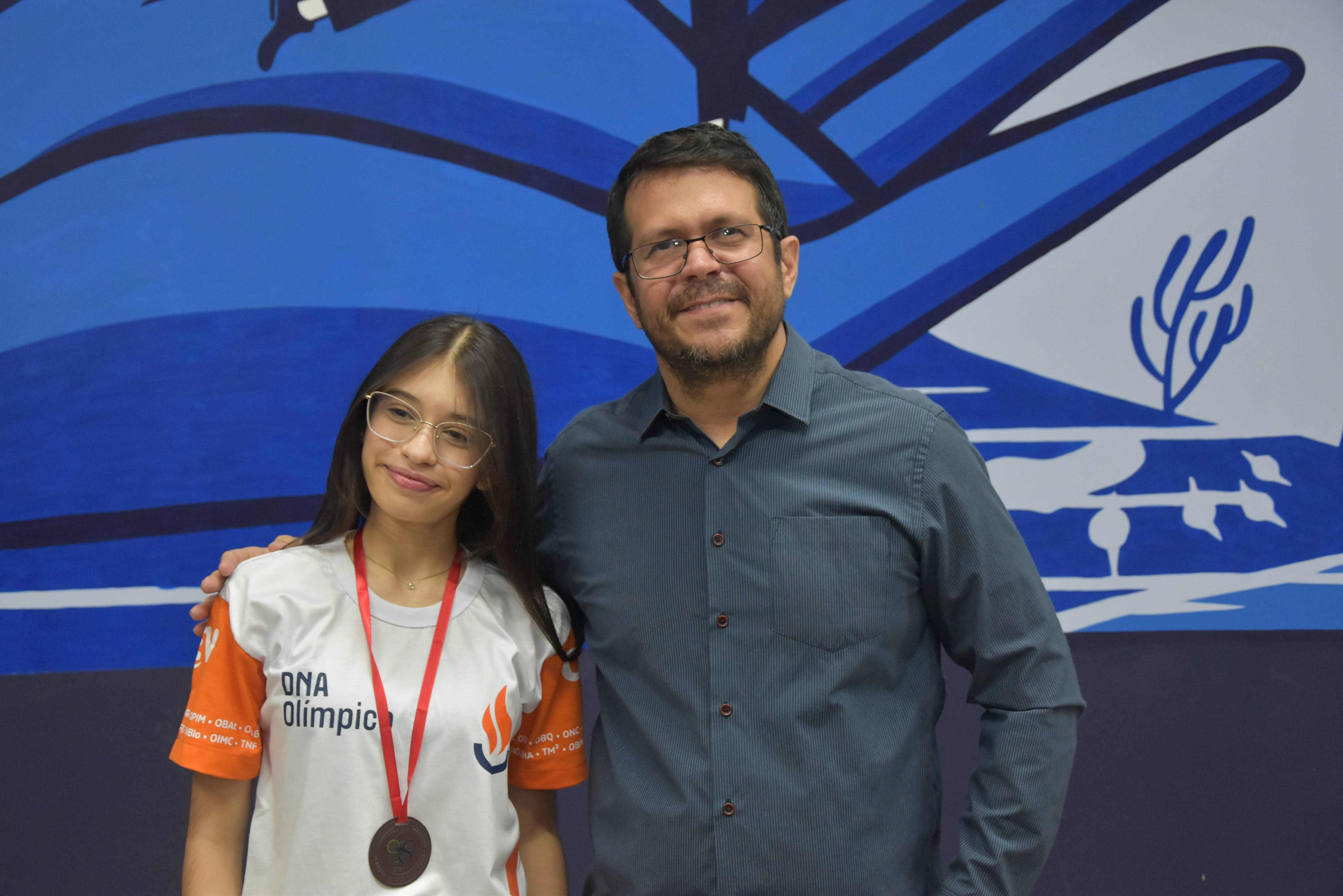 Estudante premiada, Alana Antonelyana, junto do professor André Alves Lino, coordenador da OBF no Piauí