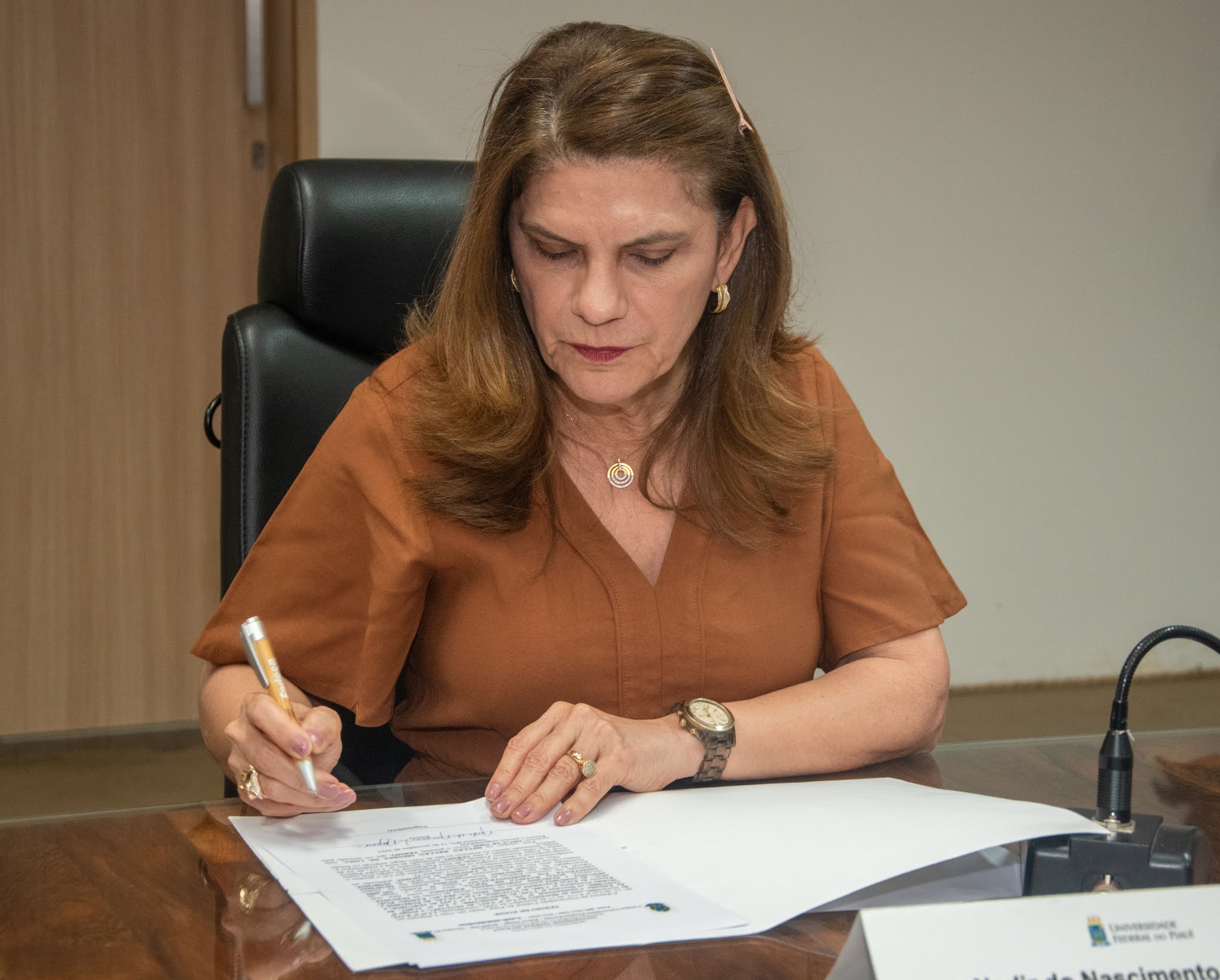 A solenidade foi presidida pela reitora Nadir Nogueira, que destacou a alegria da Universidade a cada novo ingresso de servidores, ressaltando a importância da ampliação do quadro de profissionais. “É de extrema importância para o desenvolvimento das nossas atividades de ensino, pesquisa, extensão, pós-graduação e inclusão. São muitos desafios, e é essencial contarmos com esse corpo técnico altamente qualificado”, afirmou.