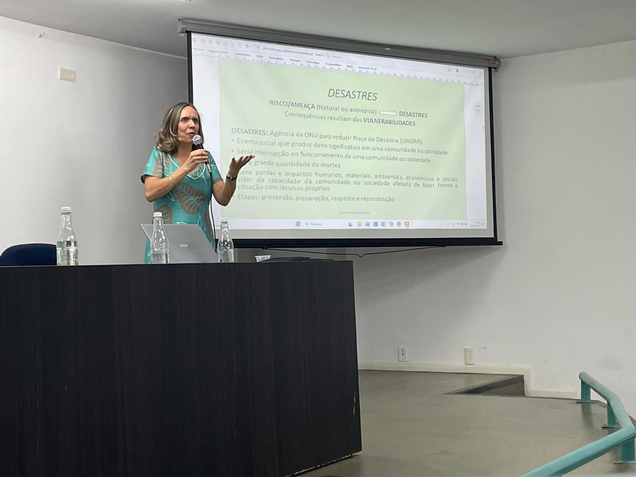 A palestra de abertura, ministrada pela Dra. Andrea Pacheco Pacífico, abordou o tema “Justiça Climática no Sul Global: Desafios e Alternativas para uma Transição Ecológica Inclusiva”, trazendo dados e reflexões importantes para o fortalecimento do debate acadêmico e para as políticas públicas inclusivas de enfrentamento às mudanças climáticas.