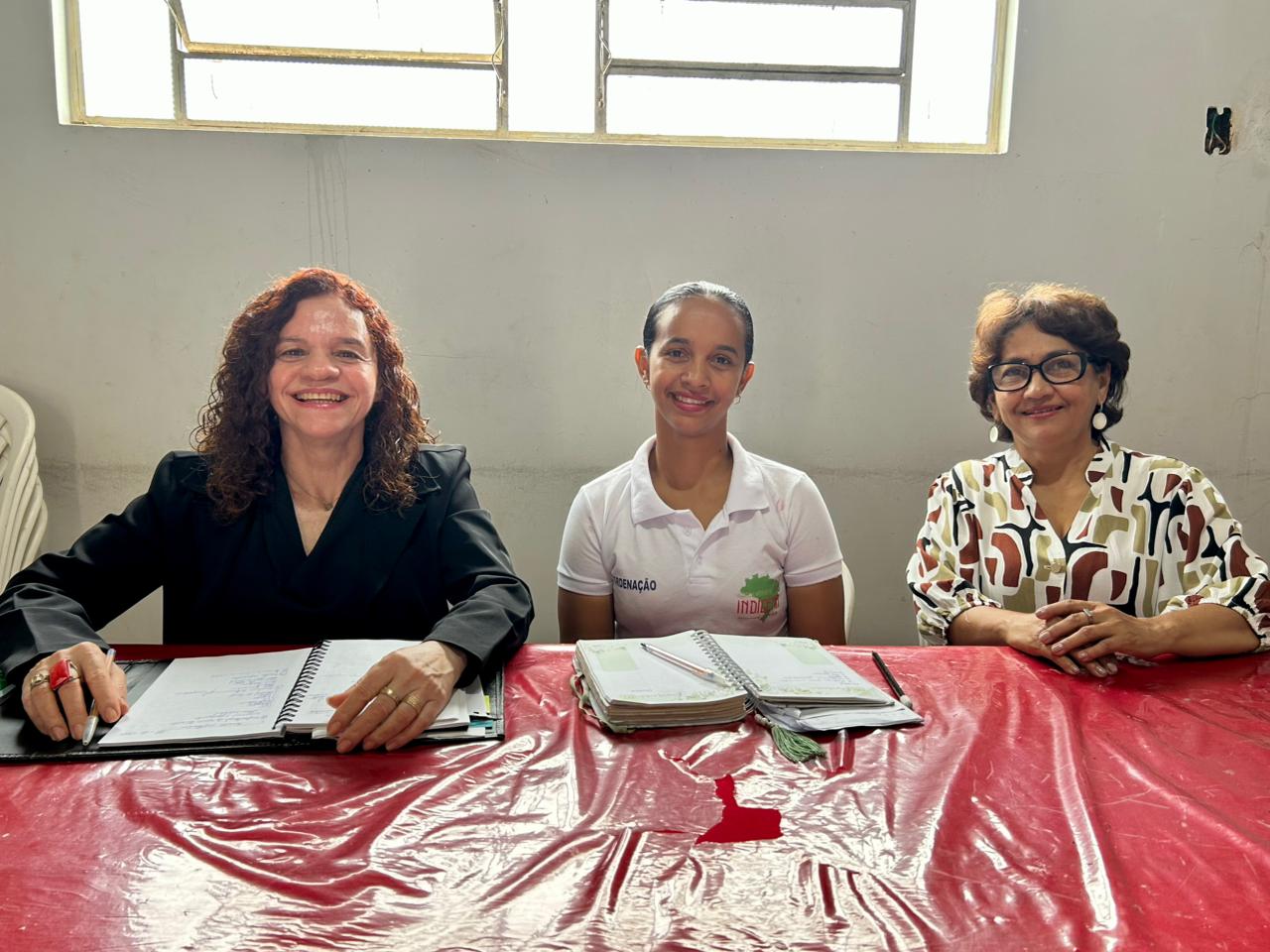 Professoras Glória Ferro, Luana Araújo e Lucineide Morais durante reunião