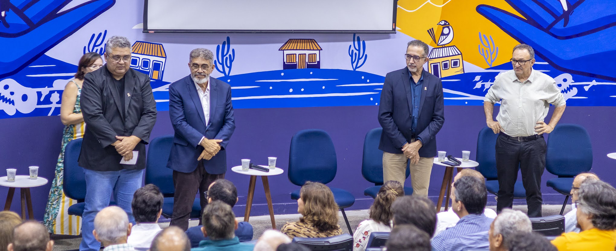 Da esquerda para a direita: o diretor do CCN, professor Humberto Soares Junior; o professor Barnabé Pessoa Lima; o vice-reitor da UFPI, Edmilson Moura; e o presidente da FAPEPI, João Xavier