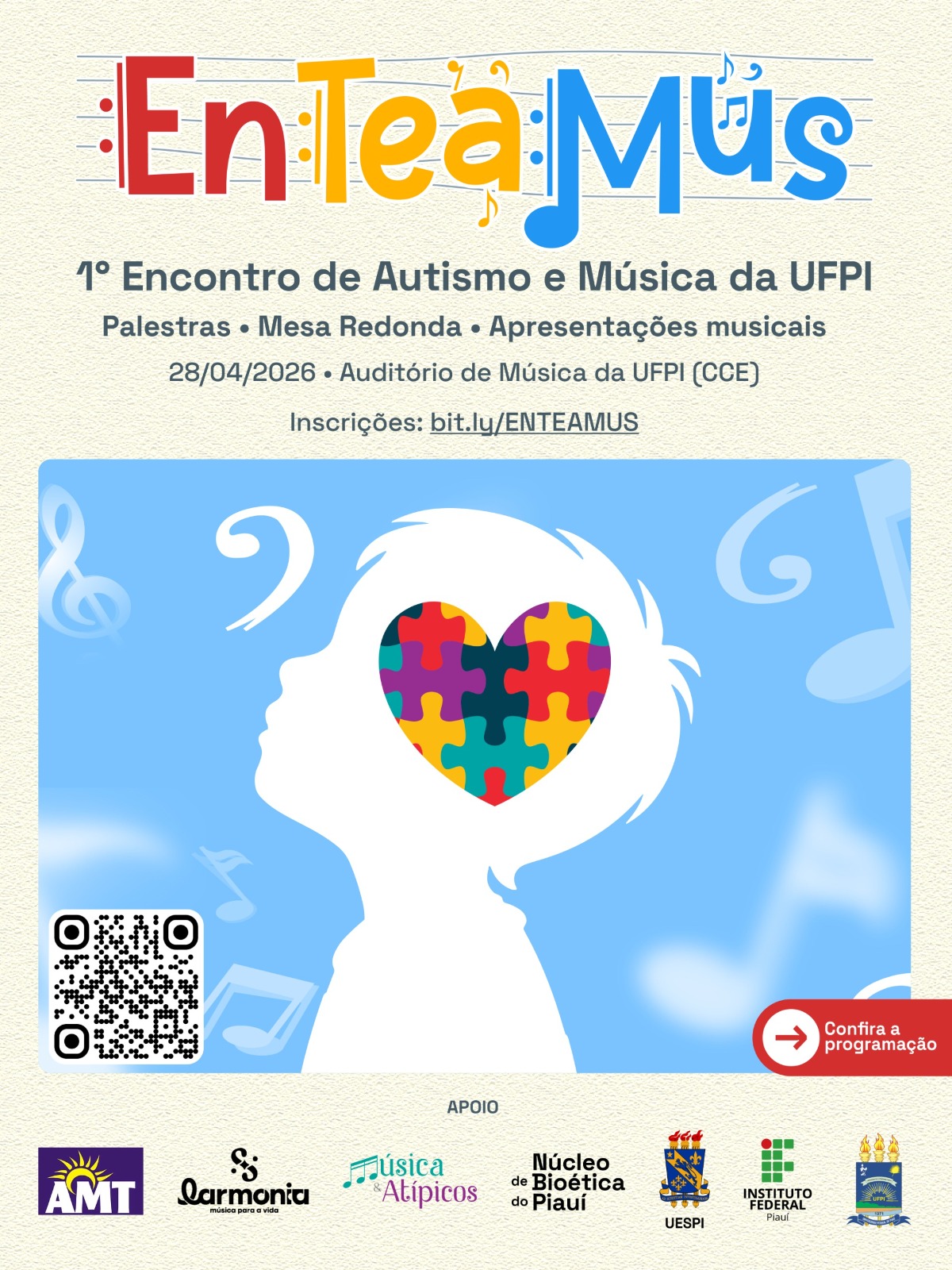 Estão abertas as inscrições para o I Encontro de Autismo e Música da Universidade Federal do Piauí (EnTeaMus), iniciativa que surge com o objetivo de ampliar o debate sobre práticas pedagógicas inclusivas. Voltado a estudantes e profissionais das áreas de Música, Saúde e Educação, além de pesquisadores e familiares, o evento propõe a construção de uma rede de saberes que articule teoria acadêmica e experiências práticas e terapêuticas. A proposta é oferecer ferramentas que respeitem a individualidade e contribuam para o desenvolvimento de pessoas neurodivergentes por meio da música. Inscreva-se aqui.