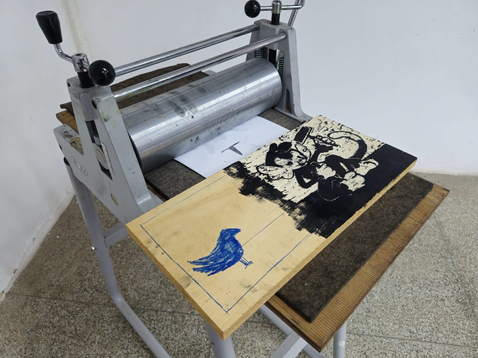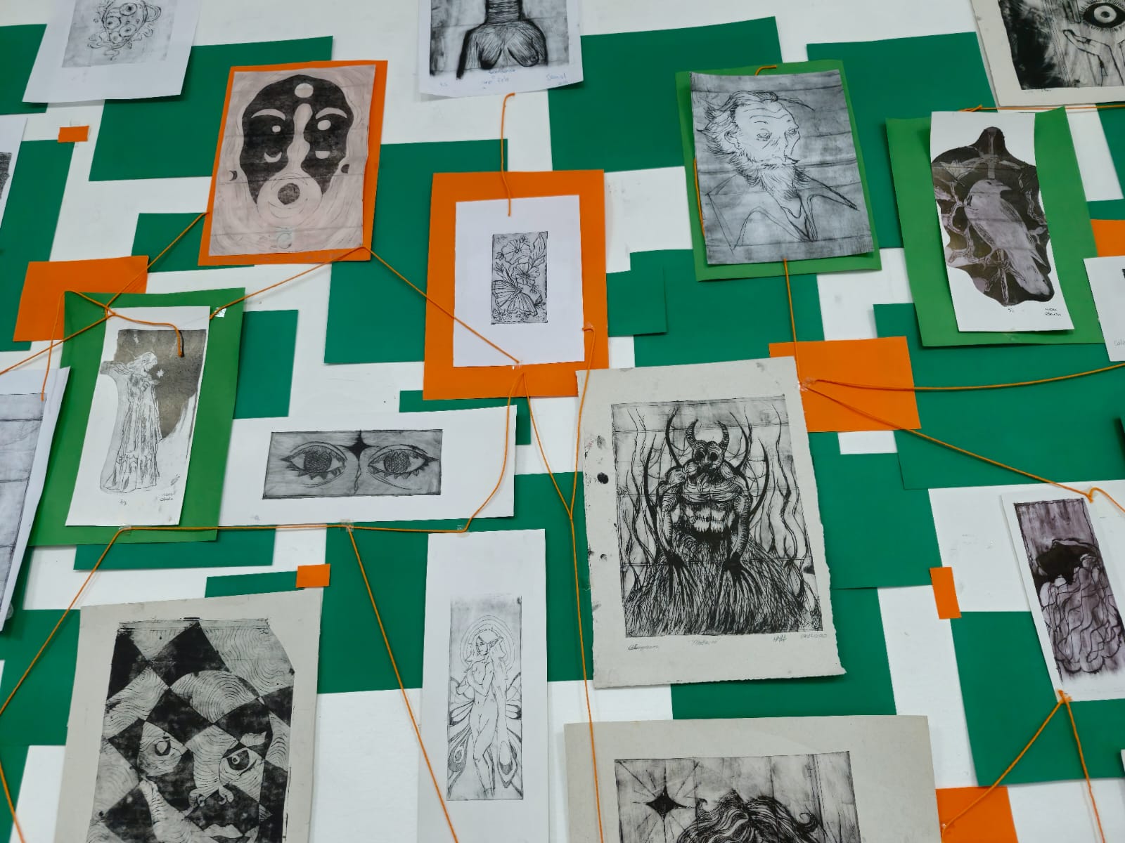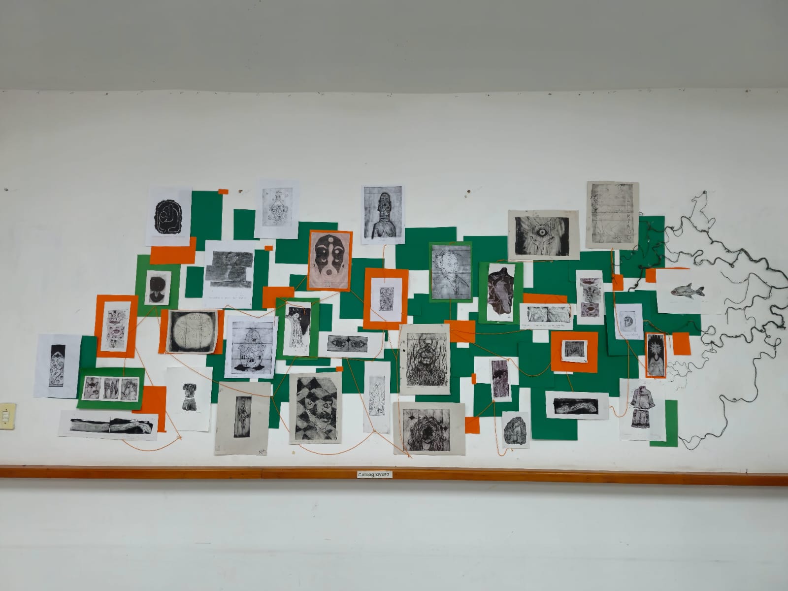 A estudante Janiele Alves Costas, que integra a comissão da exposição, ressalta o esforço por trás da atividade. “A construção da exposição é feita de estações para fazer com que a experiência seja mais imersiva. A primeira estação é feita pelas matrizes de madeira. Ao dar continuidade o espectador encontra fotos das nossas aulas, das nossas práticas e também dos materiais que utilizamos. No segundo espaço ficam os trabalhos finalizados. Nas paredes, as obras das técnicas de isogravura, calcogravura e xilogravura, penduradas em varal, fazendo menção ao cordel nordestino”, explica.