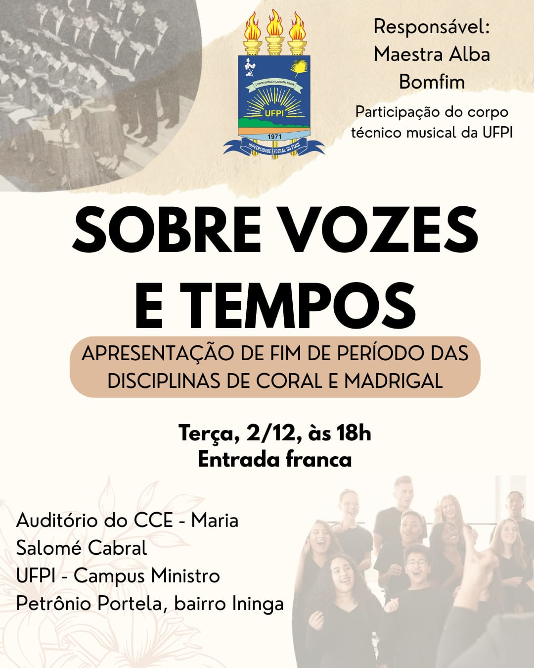 Curso de Música da UFPI realiza apresentação de fim de período “Sobre Vozes e Tempo” nesta terça (2)