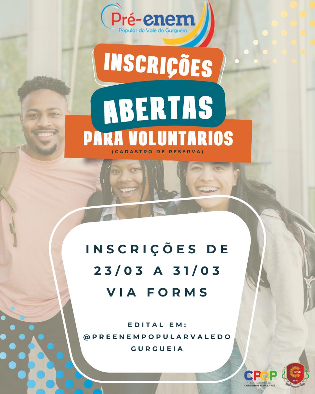 Pré-enem Vale do Gurgueia lança Edital– Chamada para Cadastro de Voluntários (as)