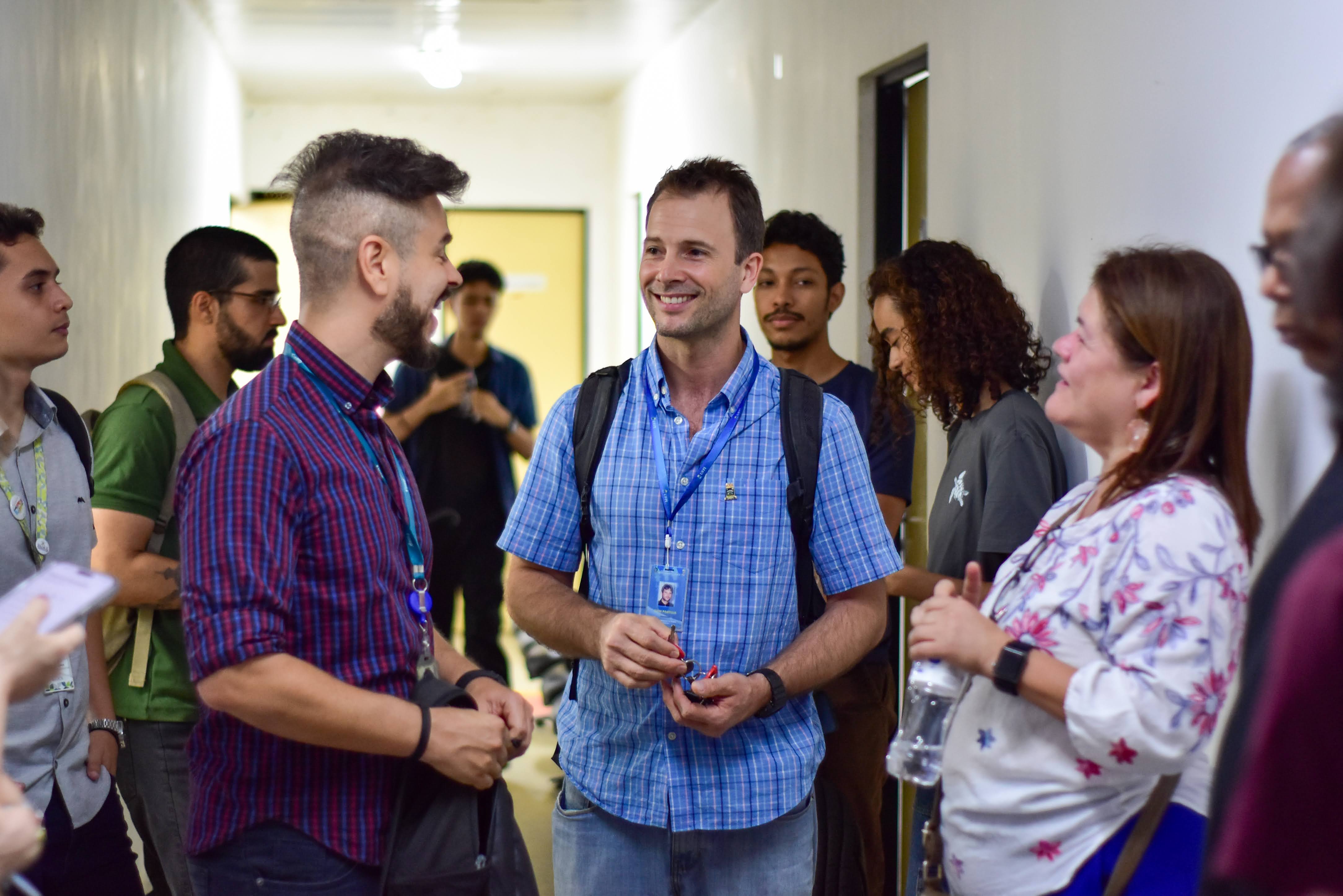 Ao final das visitas, o analista João Felipe Salvador Machado foi recepcionado pelo pró-reitor de Pesquisa e Inovação, Rodrigo Veras