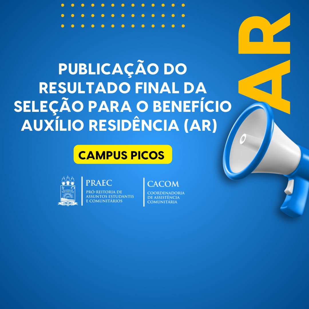 A Universidade Federal do Piauí, por meio da Pró-Reitoria de Assuntos Estudantis e Comunitários (PRAEC), da Coordenadoria de Assuntos Estudantis e Comunitários (CACOM) e do Núcleo de Assistência Estudantil (NAE), divulga o RESULTADO FINAL da seleção para o benefício Auxílio Residência (AR) do Campus Senador Helvídio Nunes de Barros (CSHNB), previsto no Edital Nº 09/2025 – PRAEC/UFPI.Os/As estudantes abaixo relacionados com a situação DEFERIDO/A-CLASSIFICADO/A com o total de 41 (quarenta e uma) vagas deverão encaminhar os termos de Compromisso e de Concordância para o endereço de e-mail Este endereço de email está sendo protegido de spambots. Você precisa do JavaScript ativado para vê-lo., impreterivelmente, no período de 06 a 07 de novembro de 2025, e participar da reunião de inserção, no dia 12 de novembro de 2025, às 15h30, na Sala 835 - Bloco de Administração do CSHNB. O/A estudante deve ter matrícula curricular ativa de acordo com o Termo de Concordância do Serviço de Apoio Pedagógico.Atenção! Os/As estudantes que são beneficiados com benefícios da PRAEC tais como: Auxílio Creche (AC), Bolsa de Apoio Estudantil (BAE), Bolsa de inclusão Social (BINCS), Bolsa de Inclusão Social (BINCS-ES), Bolsa de Incentivo a Atividades Socioculturais e Esportivas (BIASE), Bolsa do Projeto Milton Santos de Acesso ao Ensino Superior (PROMISAES) e Residência Universitária - REU não poderão acumular com o benefício Auxílio Residência – AR. Portanto, se optarem por serem inseridos/as no benefício Auxílio Residência – AR, deverão assinar termo de desligamento das bolsas supracitadas.