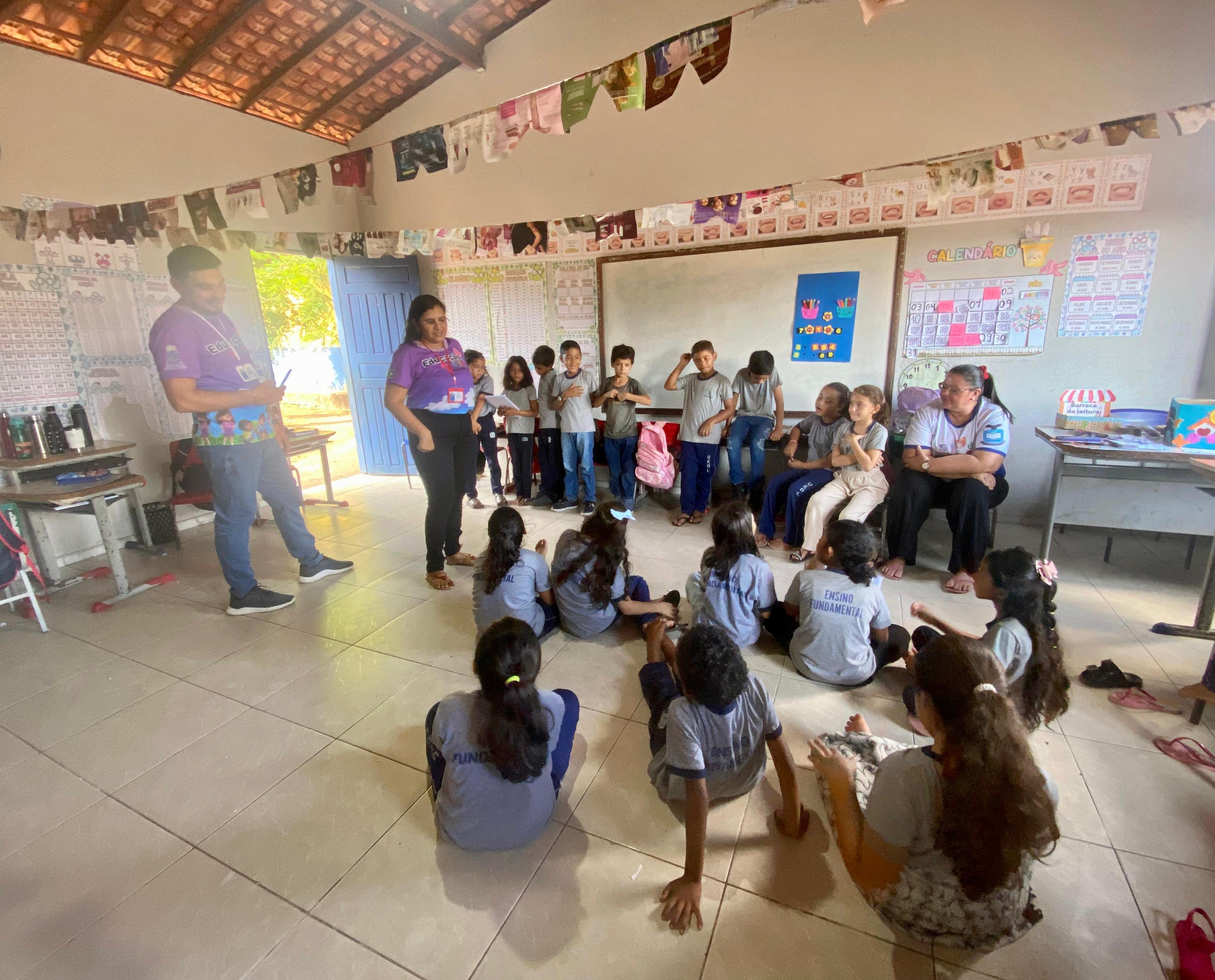 Cursistas com alunos da U.E. Duca Leal - Zona rural de Murici dos Portelas