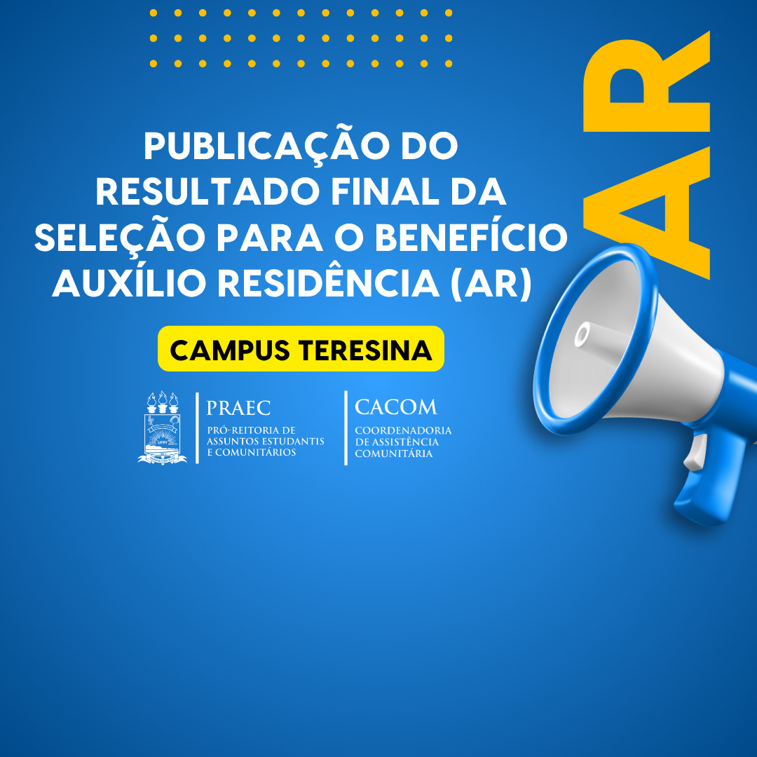 CACOM/PRAEC divulga o Resultado Final da seleção para o benefício Auxílio Residência (AR) - Campus Teresina (Edital Nº 09/2025 - PRAEC/UFPI)