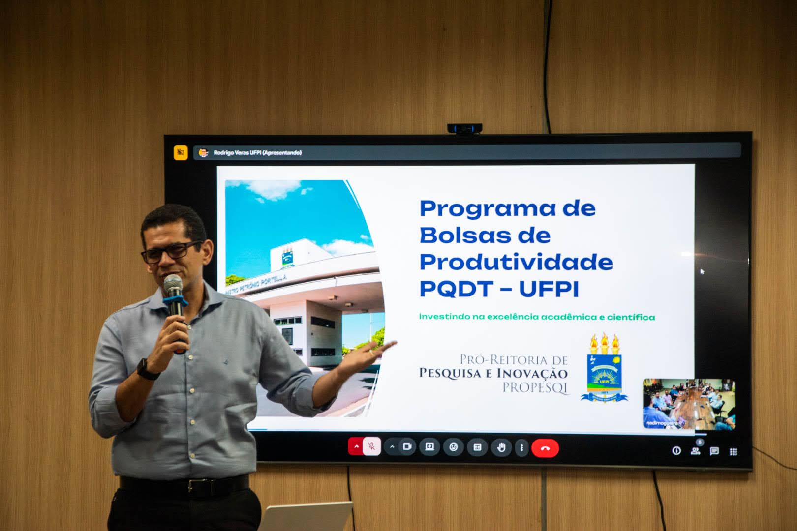 Em apresentação de dados durante a solenidade, o Pró-Reitor da Propesqi, Rodrigo Veras, destacou o avanço significativo nos investimentos em pesquisa na UFPI e o reconhecimento cada vez maior em nível nacional da Instituição, evidenciado pelo aumento no número de bolsas de produtividade concedidas pelo CNPq. Atualmente, a UFPI conta com 107 bolsistas do CNPq, o que representa um crescimento de 21% em comparação com o ano de 2024. Segundo Veras, 44% desses bolsistas do CNPq hoje foram bolsistas da Universidade, conforme resultados de 2014 até 2025, período em que um total de 116 pesquisadores foram alcançados com políticas internas de fomento e valorização das pesquisas.