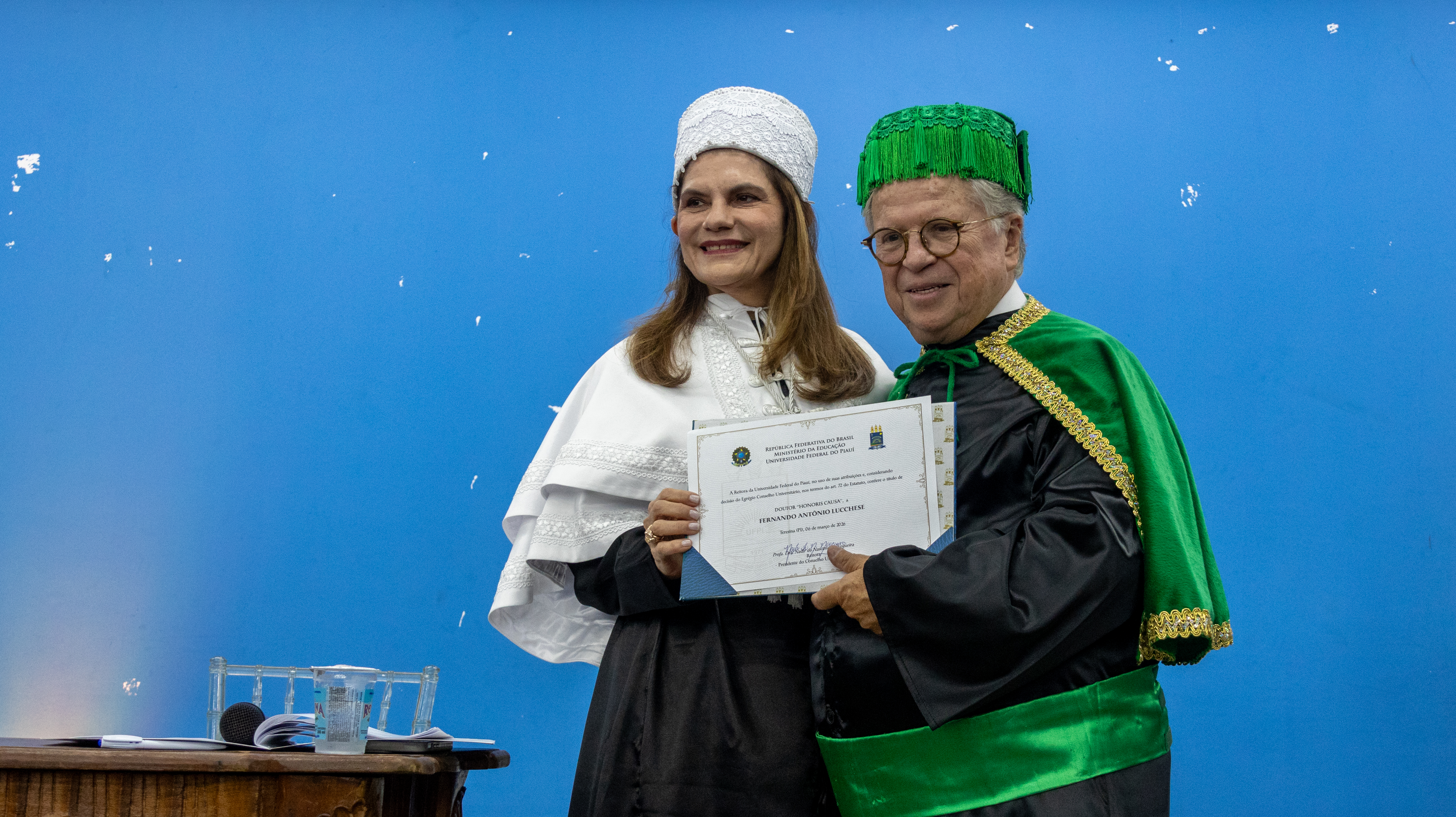 Na sexta-feira, 06 de março, em solenidade no Auditório Luís Francisco do Rêgo Monteiro, a Universidade Federal do Piauí (UFPI) concedeu o título de Doutor Honoris Causa ao médico cardiologista Fernando Antônio Lucchese, conforme a Resolução CONSUN/UFPI nº 266, de 21 de março de 2025. A outorga do título representa a máxima honraria para pessoas que tenham prestado pública e relevantes contribuições para a Universidade.