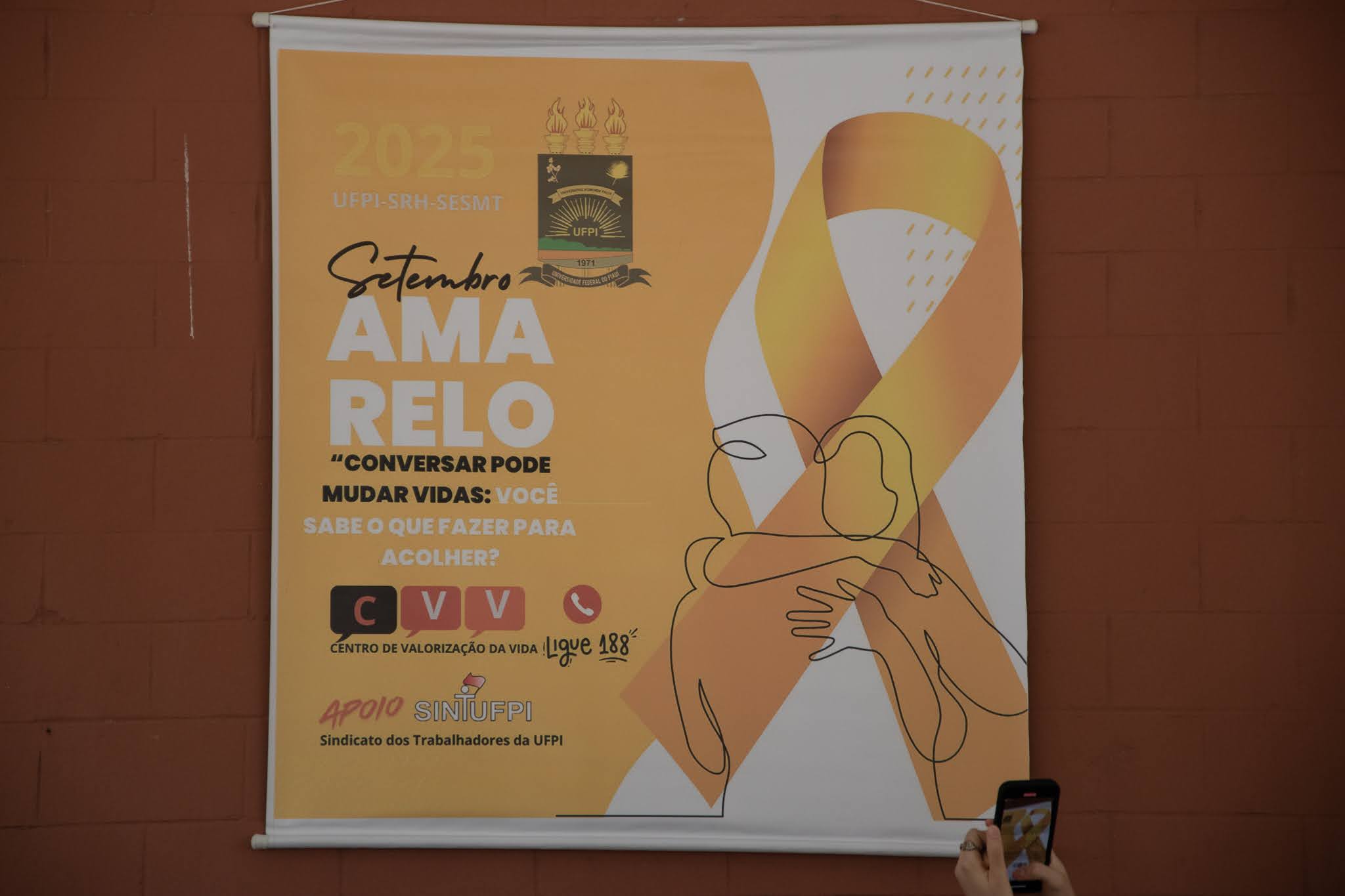 A Universidade Federal do Piauí (UFPI), por meio da Pró-Reitoria de Administração (PRAD), promoveu na manhã desta terça-feira (30) a palestra “É tempo de Florescer”, ministrada pela professora Antonella Maria das Chagas Sousa. A atividade, realizada em parceria com a Superintendência de Recursos Humanos (SRH), integrou a programação alusiva ao Setembro Amarelo e foi destinada a servidores da Instituição, acontecendo em frente à Prefeitura Universitária.