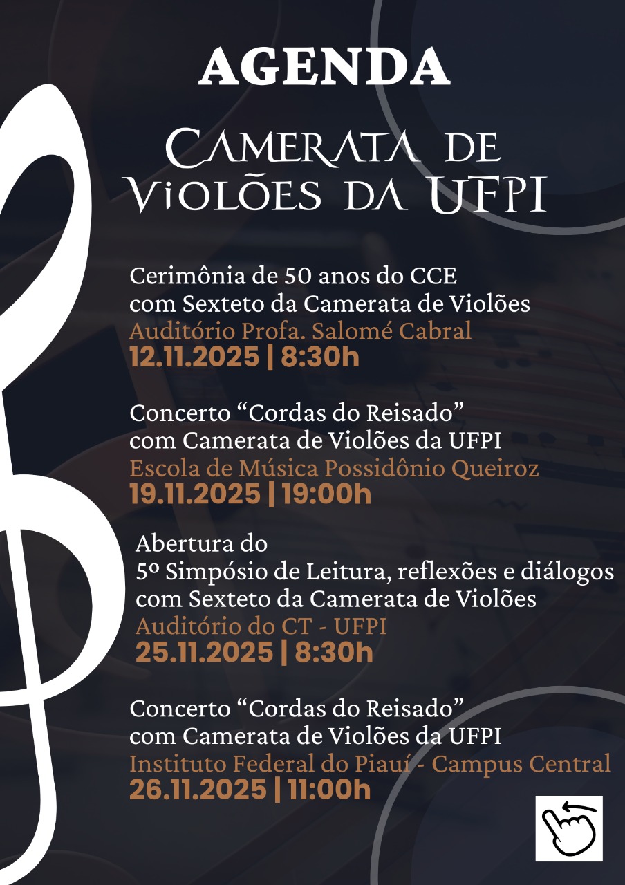 A Camerata de Violões da Universidade Federal do Piauí (UFPI) inicia, neste mês de novembro, uma agenda de concertos e participações em eventos acadêmicos e culturais de Teresina. A programação, que segue até dezembro, reforça o compromisso do grupo com a difusão da música instrumental e a formação de novas plateias para a música erudita e brasileira.
