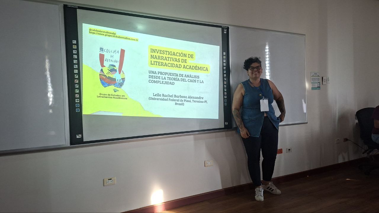 Os docentes apresentaram seus trabalhos, levando as pesquisas desenvolvidas na UFPI para o cenário internacional. A professora Leila Rachel, lotada no curso de Letras Libras, apresentou o trabalho “Investigação de narrativas de letramentos acadêmicos: uma proposta de análise pelo viés da Teoria do Caos e da Complexidade”. Já Ribamar Júnior, professor no Colégio Técnico de Floriano, apresentou a comunicação “Construindo pontes entre a educação básica e o ensino superior: ações extensionistas do projeto LPT Acadêmico”.
