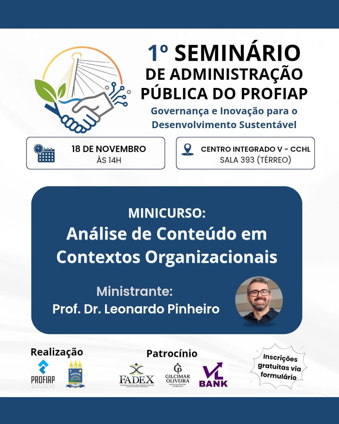 14h – Minicurso: Análise de Conteúdo de Bardin, ministrado pelo Prof. Leonardo Pinheiro
