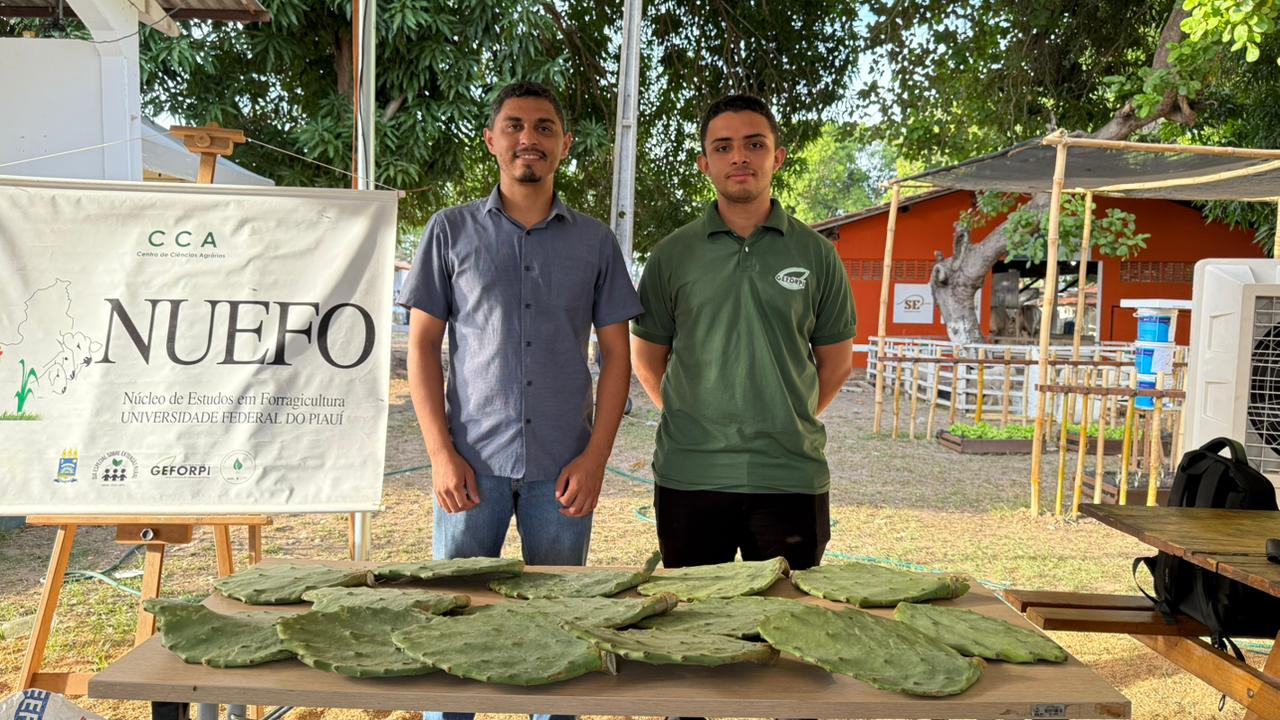 Pesquisas inovadoras também chamaram a atenção do público, como os estudos com palma forrageira, apresentados pelo mestrando Marcos Lênyn, do Programa de Pós-Graduação em Zootecnia Tropical (PPGZT). O grupo utiliza a palma em sistemas integrados voltados à alimentação animal, melhoria do solo e produção de silagens. “Durante a semana, apresentamos silagens, métodos de conservação de forragens, fenação e cultivo de gramíneas e leguminosas. Também realizamos a doação de palma forrageira, iniciativa do professor Ricardo Loiola, a partir de experimentos desenvolvidos na UFPI. A palma é utilizada em sistemas integrados, melhora a qualidade do solo e da alimentação animal e pode ser empregada como reidratante de farelos em silagens. É uma alternativa prática e eficiente para produtores do semiárido, devido à sua resistência à seca e às altas temperaturas”, destacou.