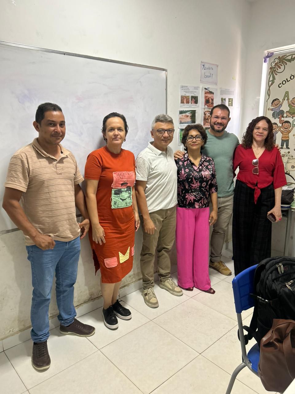 Prof. Marciel Castro (primeiro da esquerda para direita) e coordenadores em escola onde ocorrem aulas do curso de Pedagogia Intercultural Indígena