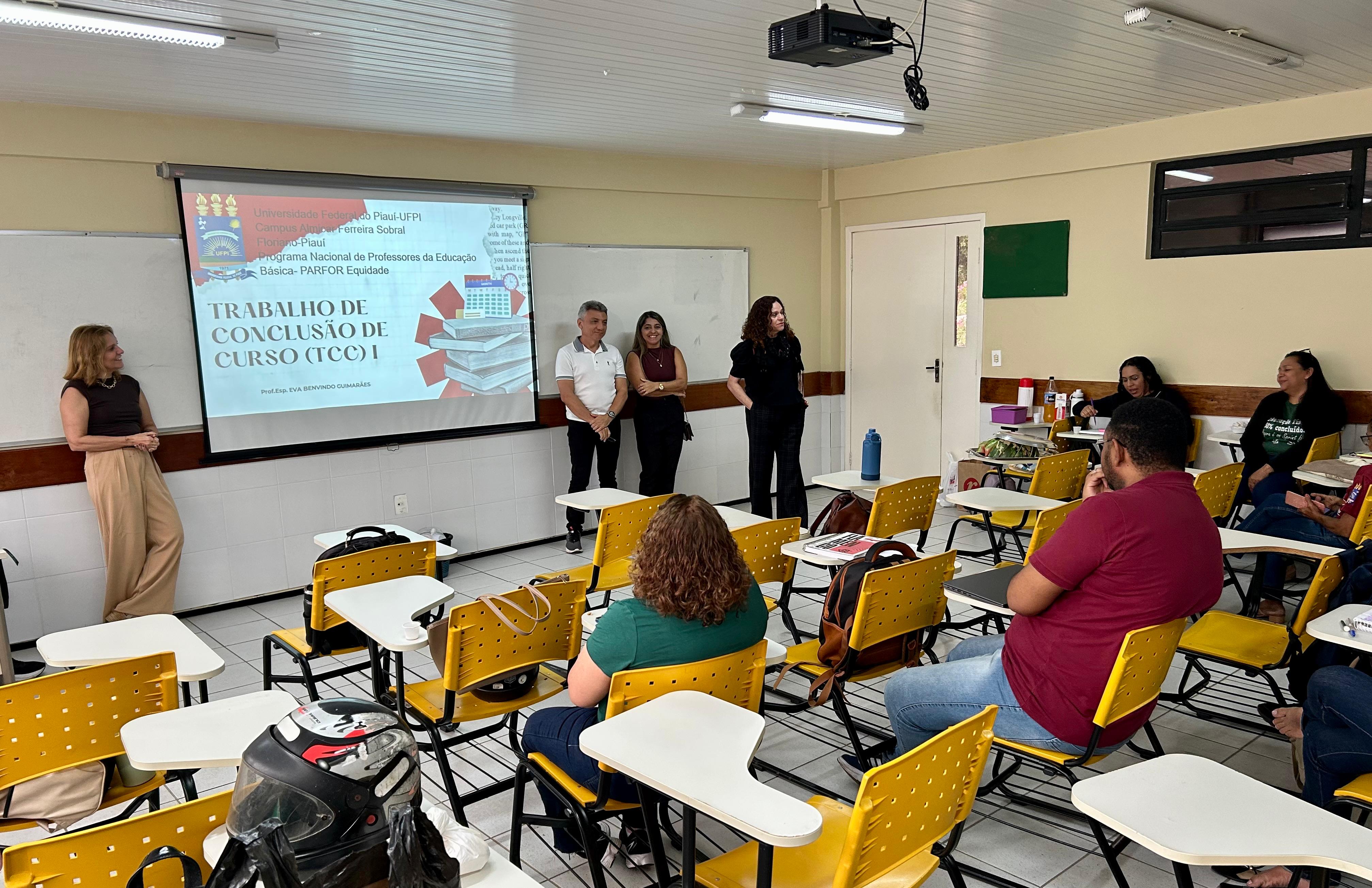 Durante a visita ao Polo de Floriano, que ocorreu na quinta-feira (29), estiveram presentes a Coordenadora Institucional do PARFOR/UFPI, Profa. Glória Ferro; o Coordenador Adjunto do PARFOR/UFPI, Prof. João Benvindo de Moura; a Coordenadora Adjunta do PARFOR Equidade/UFPI, Profa. Lucineide Morais; o Coordenador do Curso de Educação Bilíngue de Surdos, Prof. Clevisvaldo Lima; e a Coordenadora do Curso de Educação Física, Profa. Vânia Orsano.