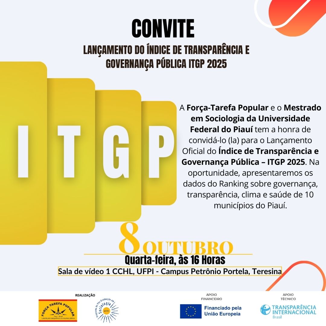 Força-Tarefa Popular lançará Índice de Transparência e Governança Pública - ITGP 2025 na UFPI