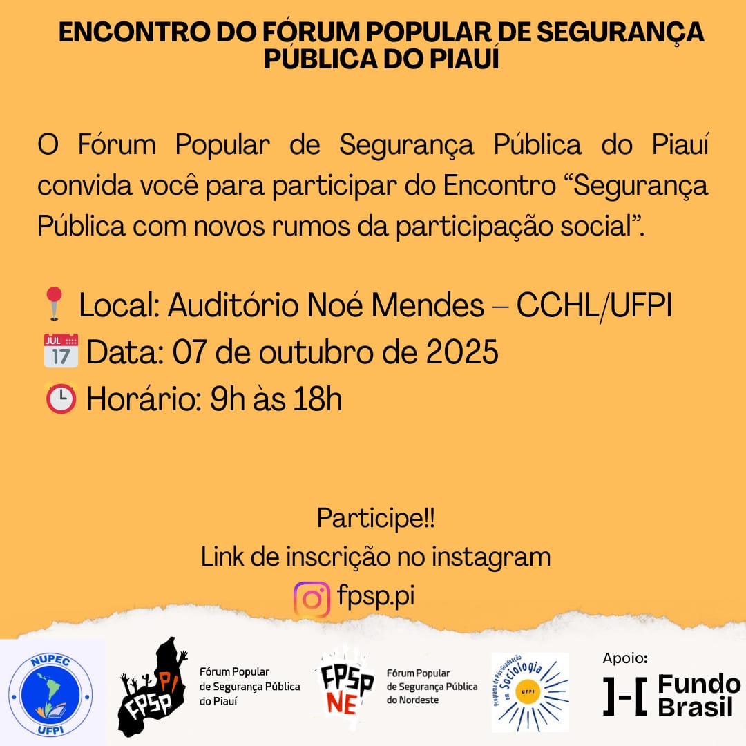 UFPI sediará Encontro do Fórum Popular de Segurança Pública do Piauí em 7 de outubro